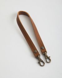 カバンのストラップと同じ二枚重ねレザーは、耐久性もばっちり。使っていくうちに手になじんでいきます。