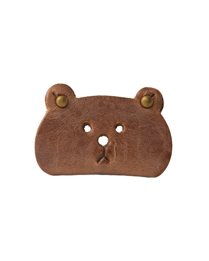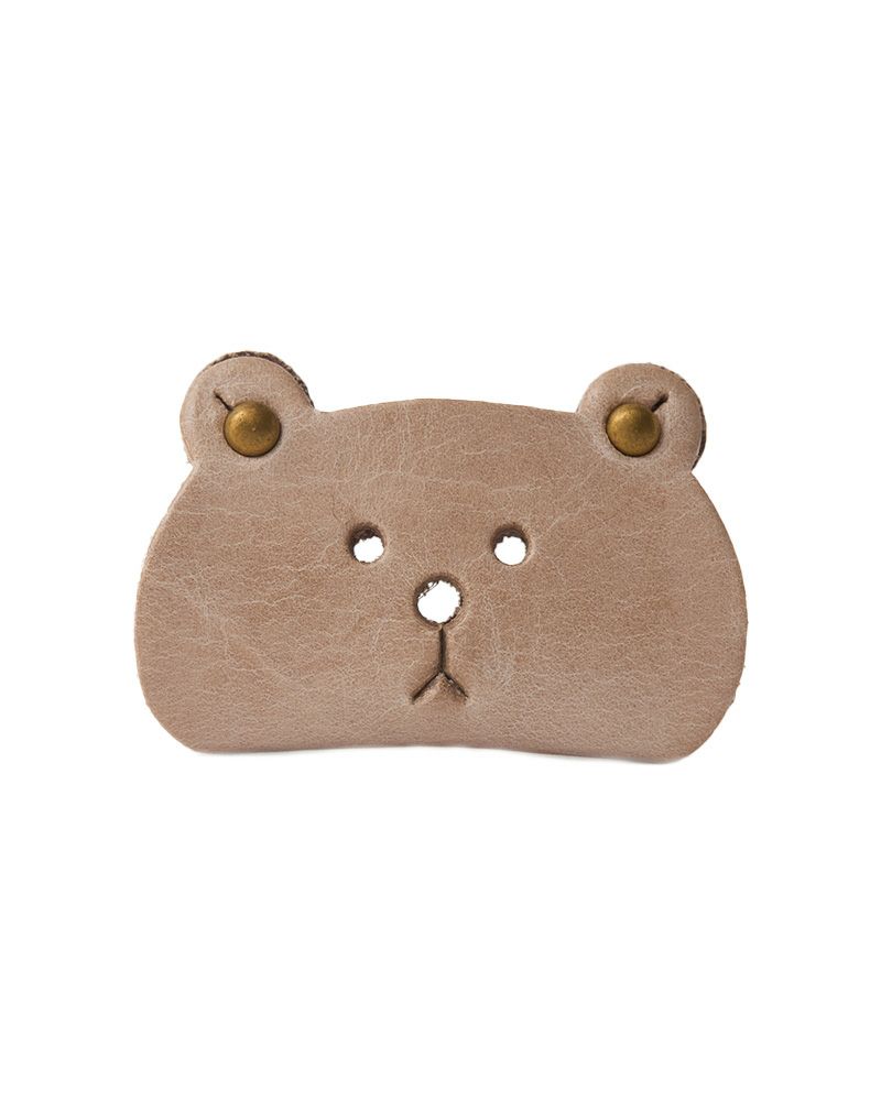 サイズはSとMの2種類です。イヤホンや短めの充電コードはSサイズ、太さや長さのあるものをまとめる場合はMサイズをどうぞ。クマさんのカラーバリエーションは、ココアブラウン、ペールトープカナリーイエローの3色。茶グマと黄グマ、ちょっと渋めのシロクマ?みたい。革の表情が、ナチュラルなかわいさを出しています。