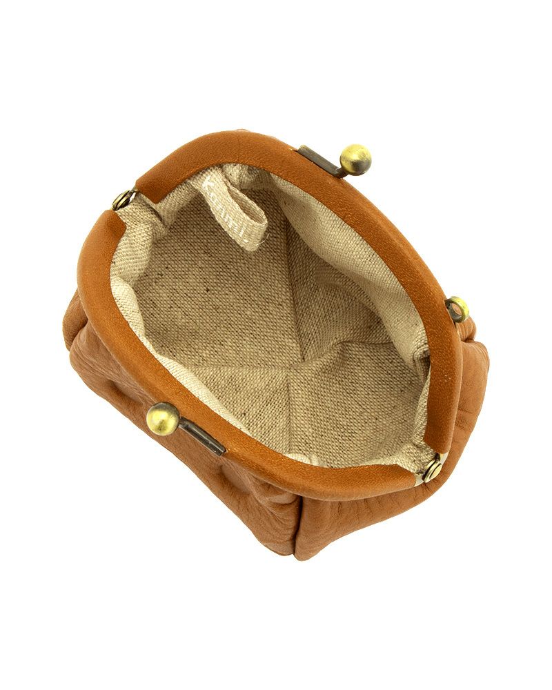 金属部分をやわらかい革でやさしく包み上品な仕上げを施した小さながま口。シンプルだからこそ飽きが来ず永く寄り添います。