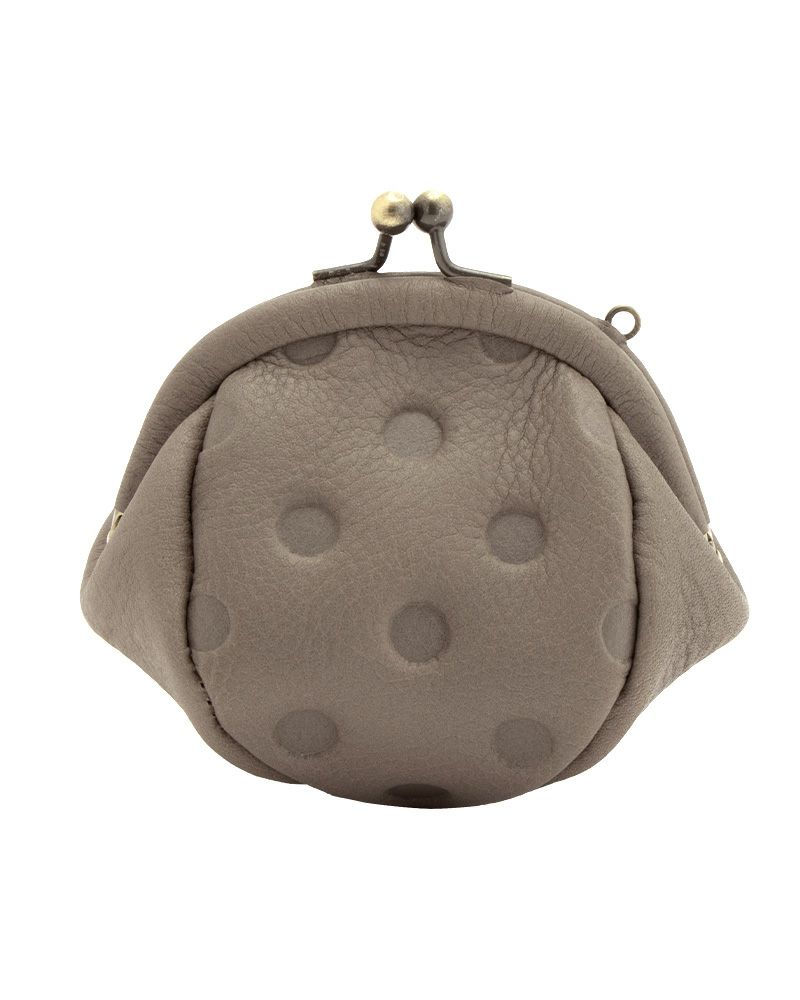 コインの種類が一目でわかる!箱型の小銭入れが使いやすい長財布。ナチュラルな風合いなレザーをつかった水玉模様が目を引くデザインです。