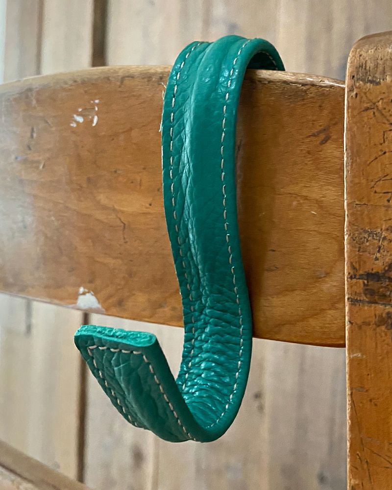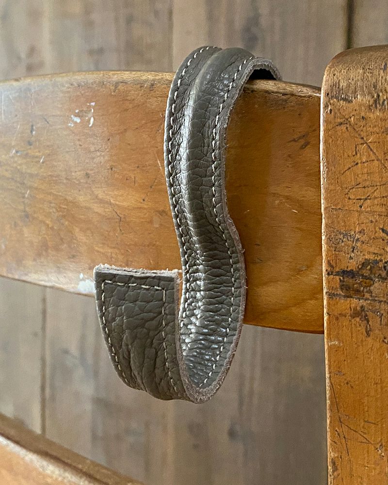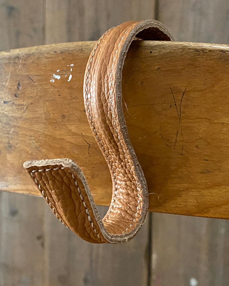 本革を使ったフリーフックです。お好きな形に曲げられるので、使用する場所や引っかけたい物に合わせてご使用ください。S字フックの要領で、バッグや帽子などを見せて収納するのはもちろん、ひとつカバンに入れておいて、お出かけ先での荷物掛けとしても。Kanmi.のSHOPでも、商品ディスプレイで大活躍している、縁の下の力持ちです。