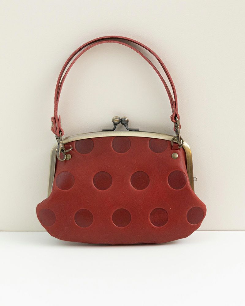 オリジナル水玉のキャンディシリーズから、存在感ばつぐんの、持ち手付きのがま口が新登場。