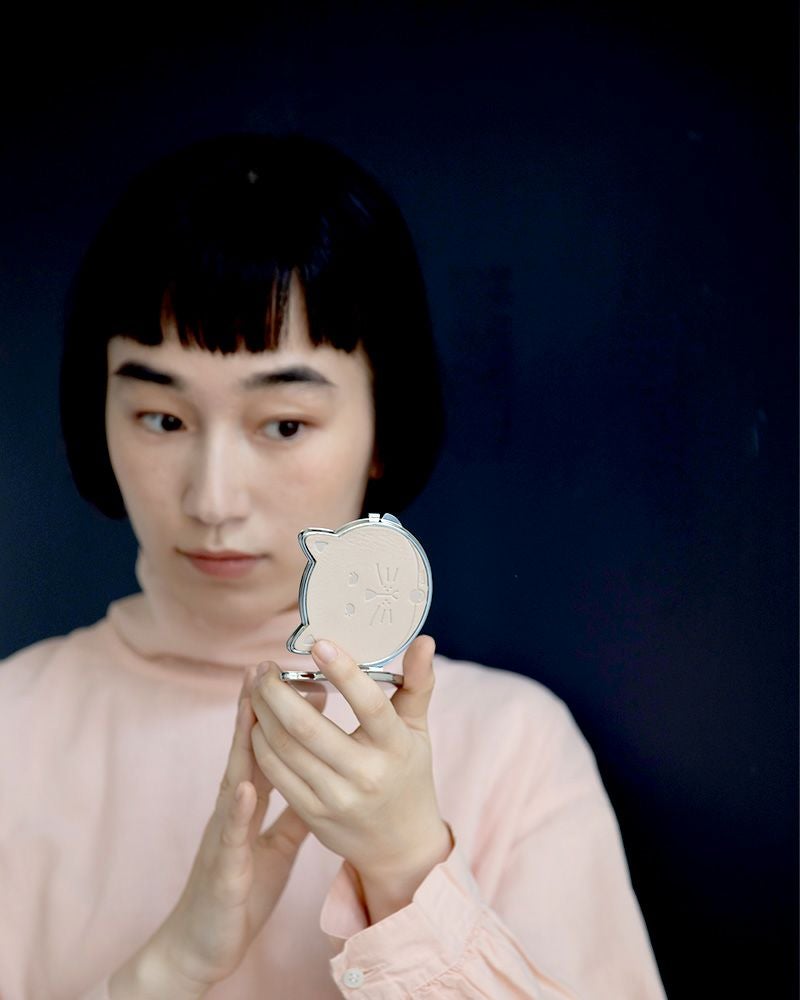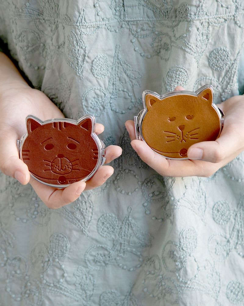 片方は普通のミラー、もう片方は三倍鏡です。 メイク直しなどにも活躍しそう。かわいいお顔で仕事のできる猫たちです。