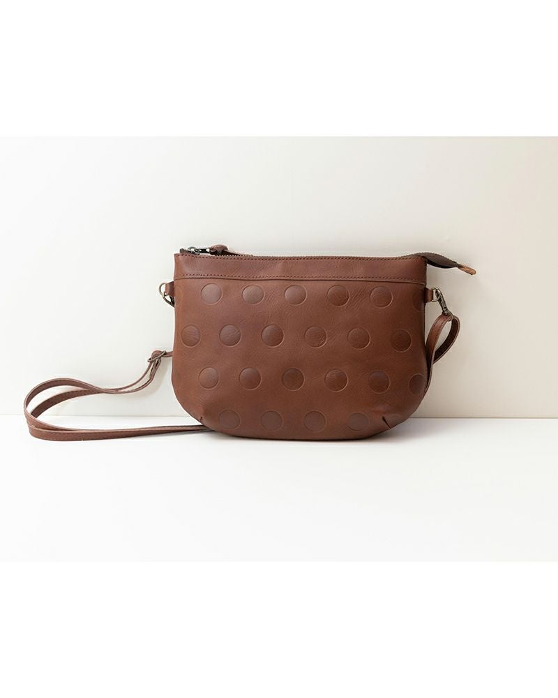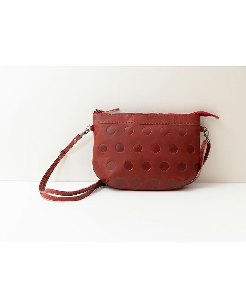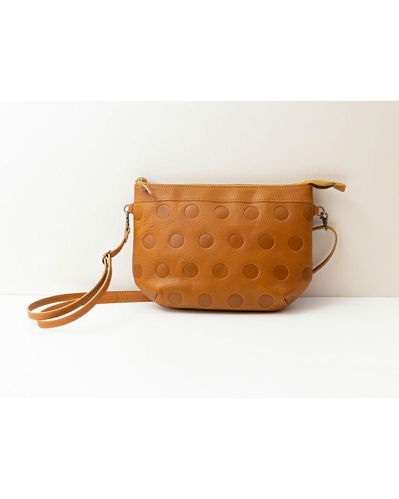キャンディみたいな水玉模様はKanmi.オリジナル。丸の大きさ、間隔、配置までこだわって作った水玉もようがふっくらと型押しされています。 牛革に型押しし、沈み込んだ部分が少し濃い色でコントラストが魅力です。 ポコポコとした手触りもなんだかほっこりとさせてくれます。 傷付きにくいサラサラな本革は、使い込むとしっかりツヤがでて、より愛しく感じさせてくれます。ケア用品のBee エイジングオイルと相性◎。
