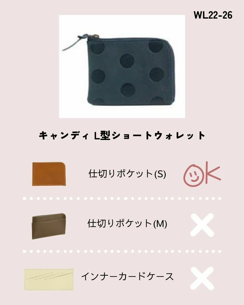 おしゃれの幅が広がる、身軽なお財布。 おしゃれの幅広がる「キャンディ L型ショートウォレット」