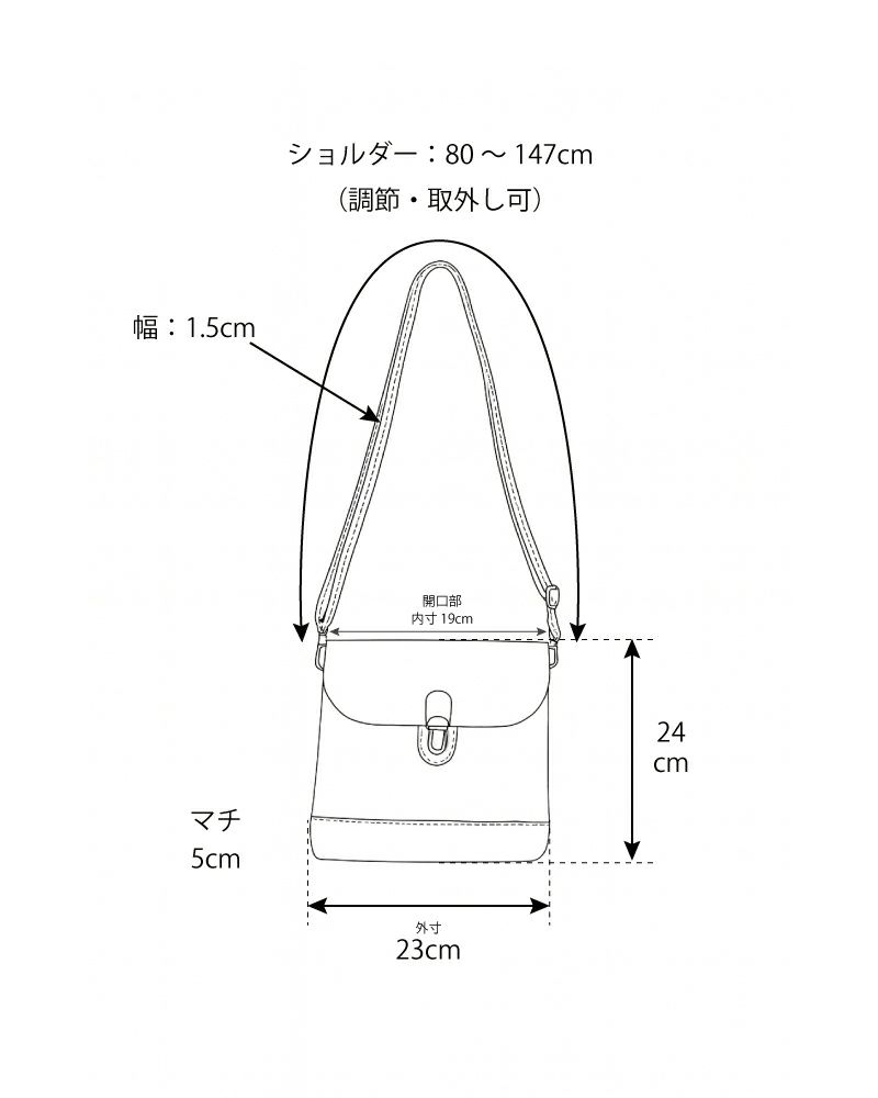 ショルダー:幅1.5cm、長さ80~147cm(調節・取外し可)