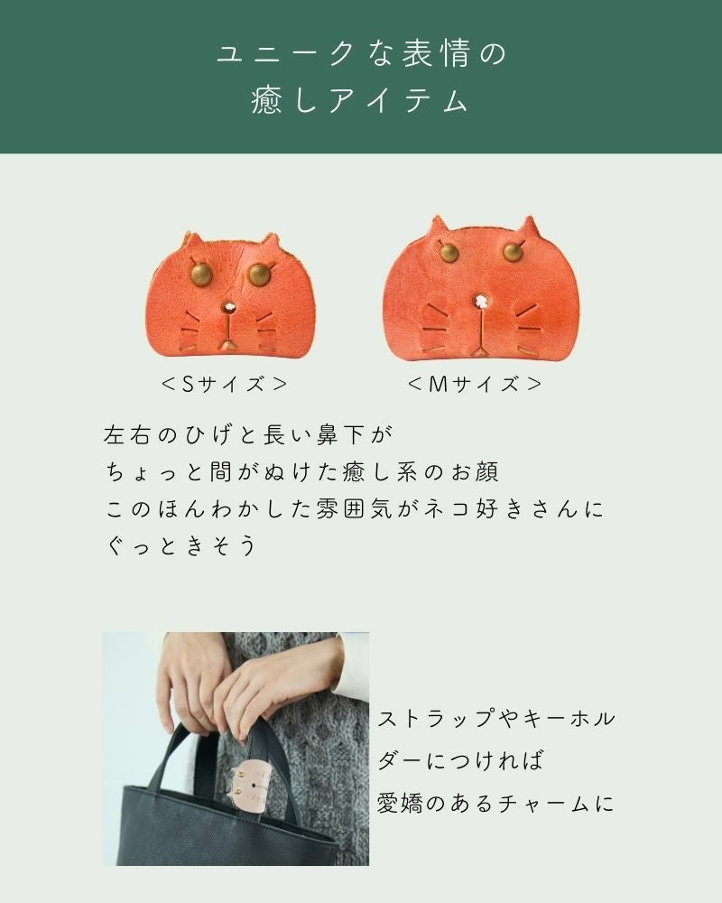 丈夫でかわいい本革の小物なので、ネコ好きさんへの贈り物にもおすすめです。見た途端に笑顔になれる、気軽なプレゼントとしてどうぞ。