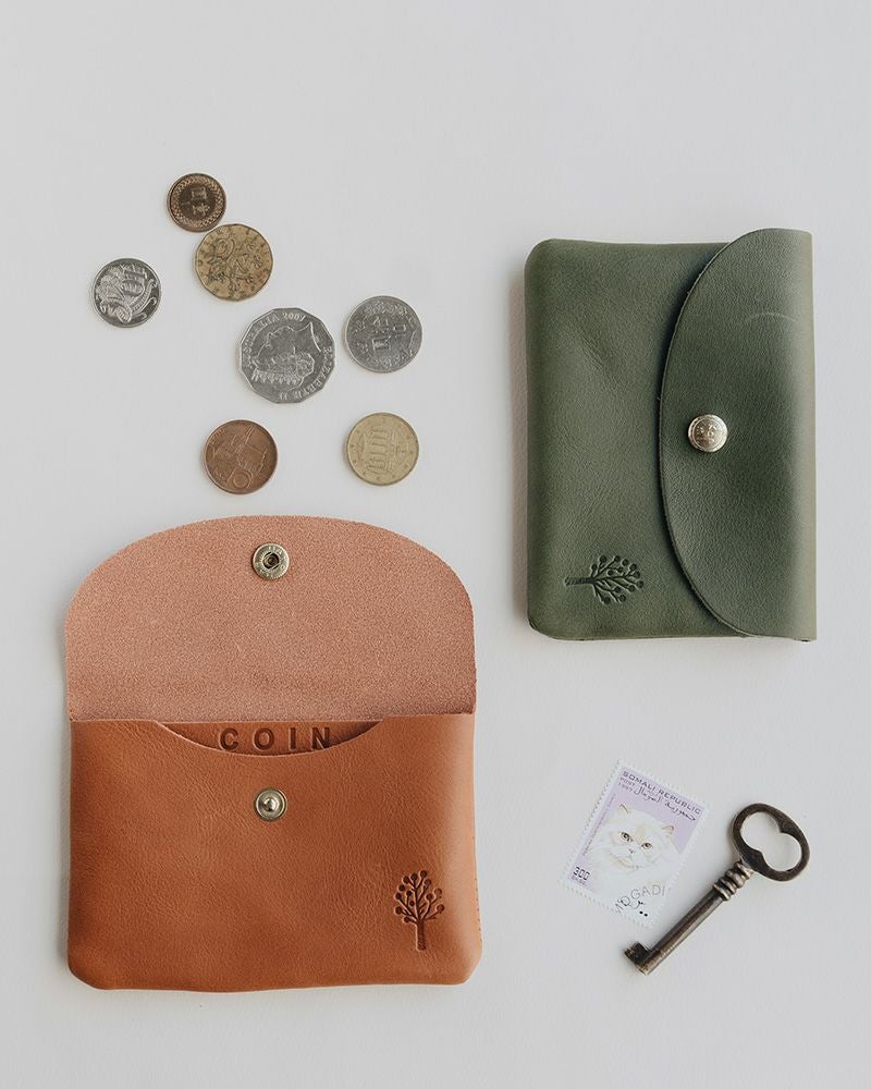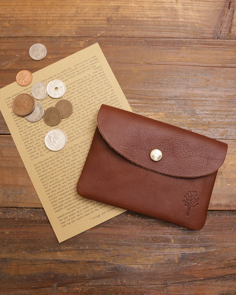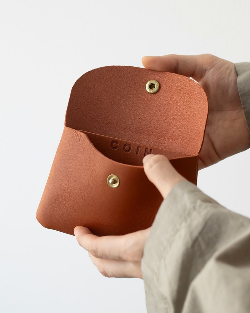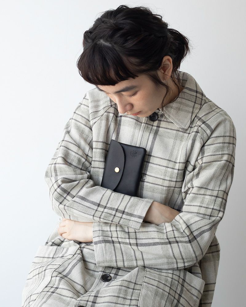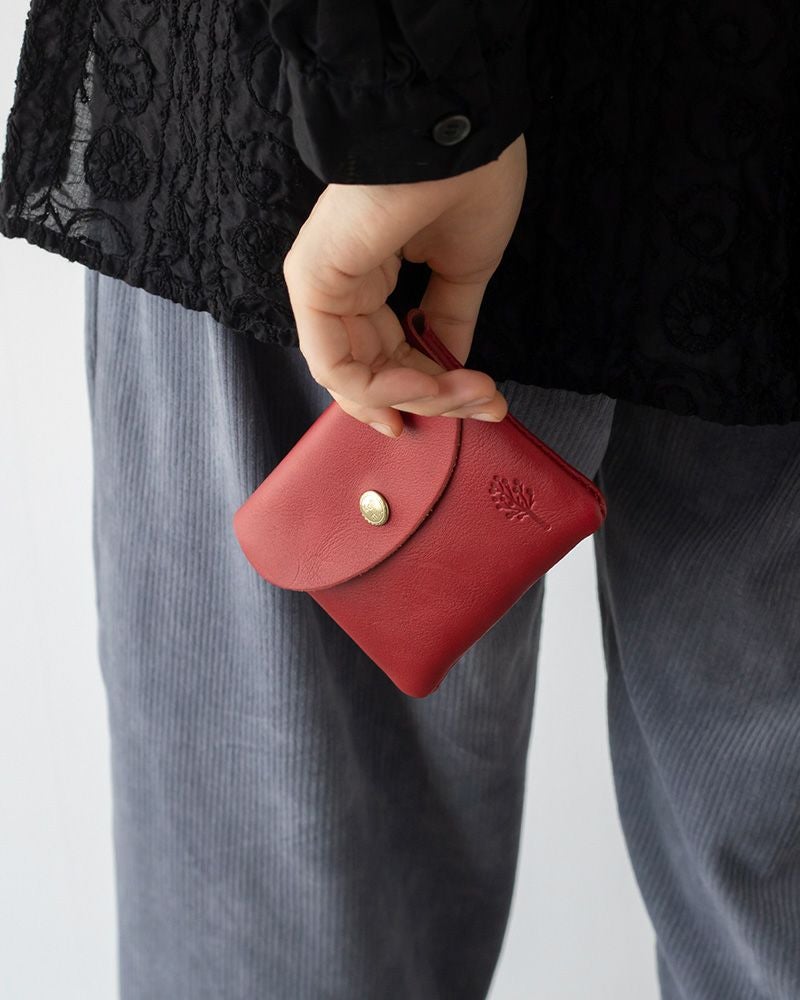 ポケットに入れられるコンパクトで軽いお財布。男性にも使いやすい切りっぱなしの潔さと、角と蓋のラウンドの柔らかい印象が絶妙なバランス。革の裏面の厚みを漉いたことで、内側もなめらかな手触りになって、使い込んでも毛羽立ちにくいのも嬉しい。