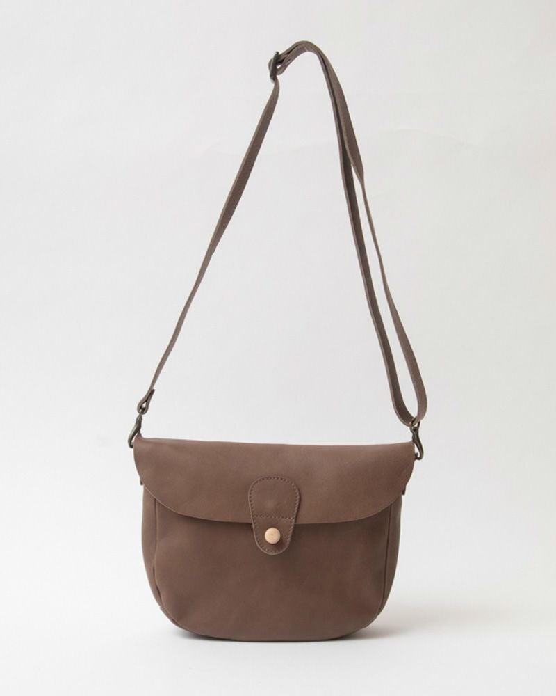 革と木の組み合わせと柔らかいゆるやかなカタチが、レトロさを感じさせる自然派ショルダー。小花柄のワンピースやアースカラーのリネン素材の洋服にグリーンやキャメルを合わせると、森に溶け込むようなナチュラルな装いに。今日は公園でピクニックでもしようかな。