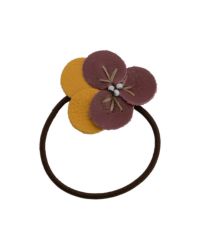 やわらかい革で出来た愛らしいビオラのヘアゴム