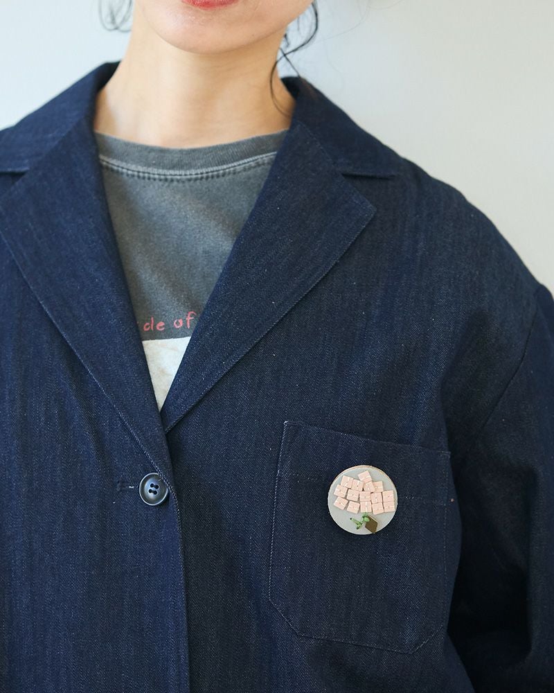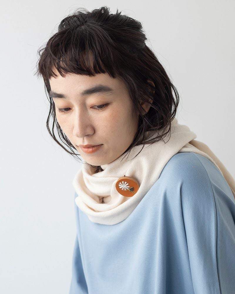 厚みと立体的な刺繍が優しい存在感を出しているので、厚手のコートの襟元や胸元につけても主張してくれるブローチです。黒やグレーなどのダークトーンが多くなりがちな秋冬に、ぱっと鮮やかな彩りを添えてくれます。 無地のセーターや革バッグなどシンプルなアイテムに合わせやすいのはもちろん、小花柄のワンピースの胸元につければ、よりガーリーな気分に。