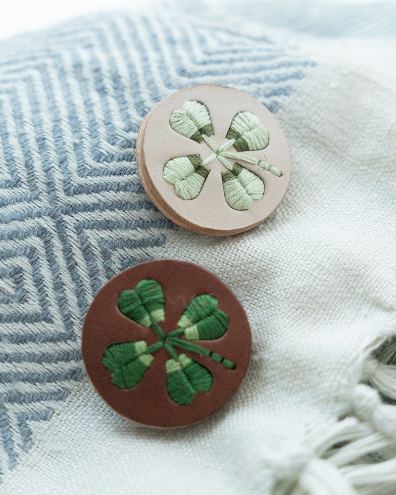 お花や植物モチーフと刺繍を組み合わせたファッションアクセサリーのsa i teシリーズの、クローバー。一本ずつ糸を通した手仕事から生まれるクローバーは、刺繍糸を2色組み合わせることで、大人っぽい上品な仕上がりになりました。