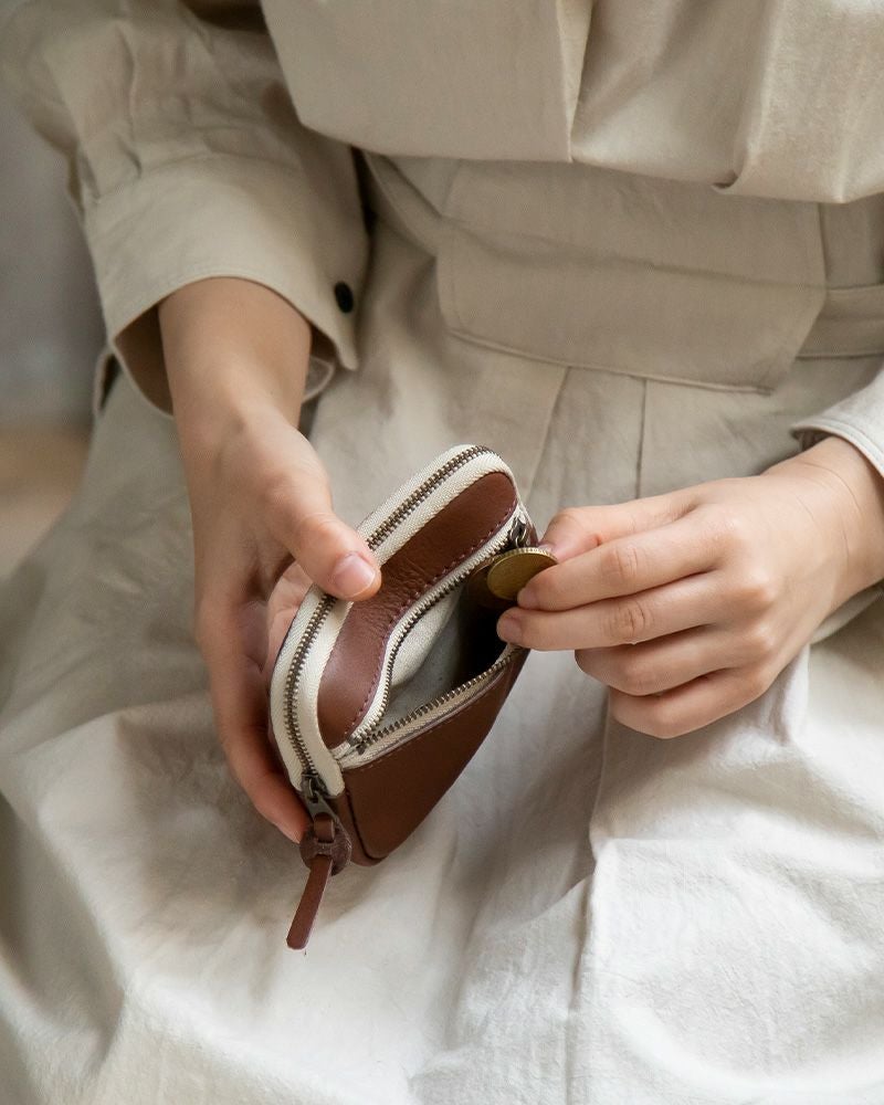 カードに、カギに、本当に必要なものだけを入れて身軽に出かけたい。 そんなときにも、ファスナーでしっかり閉めてくれるから安心して使えそう。