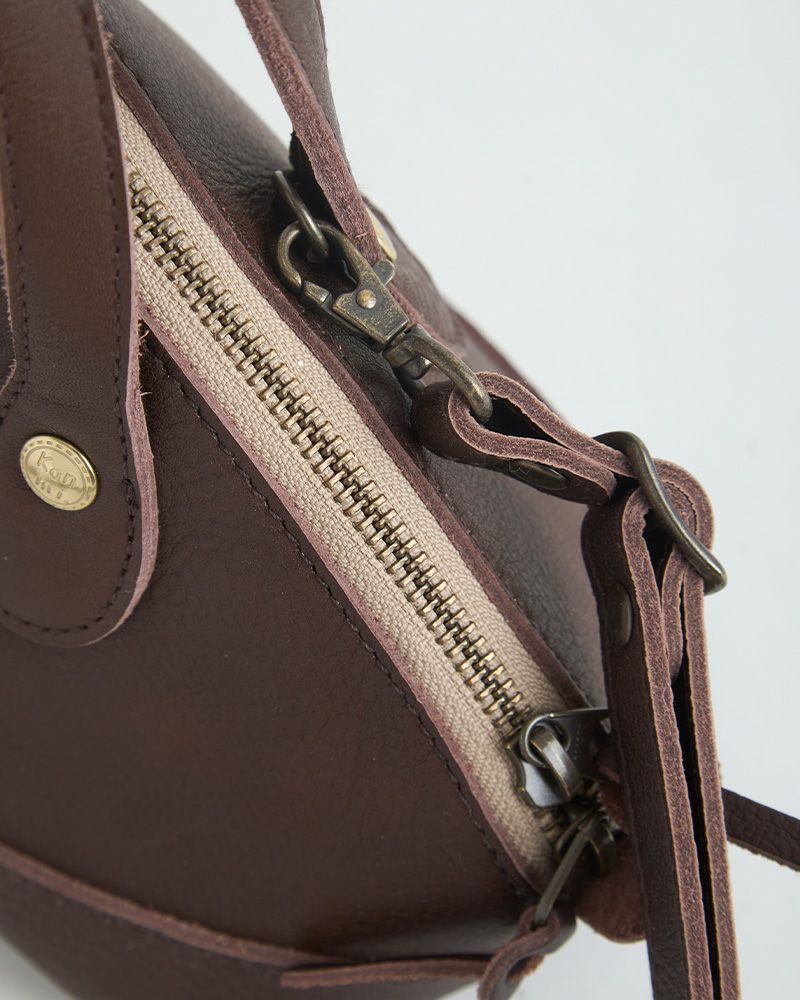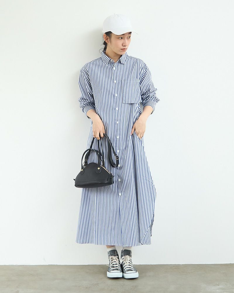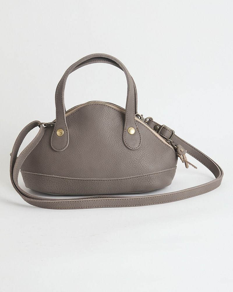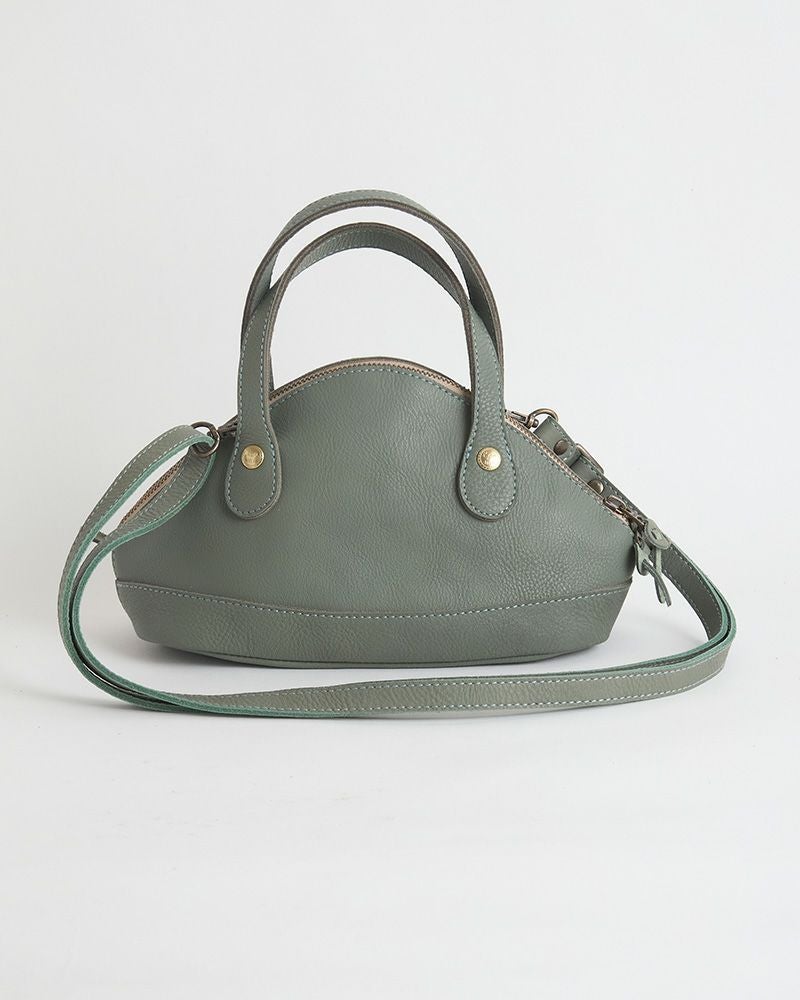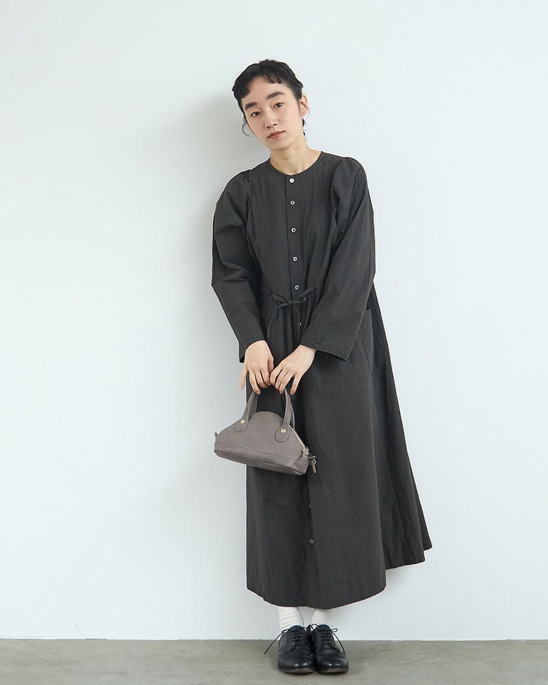 ファスナーが山のようにカーブして大きく開くシルエットが個性的。マッシュルームのように見えるので、「マッシュトートショルダーバッグ」と名づけました。部屋にかけて出番を待っている時も、存在感があるバッグです。
