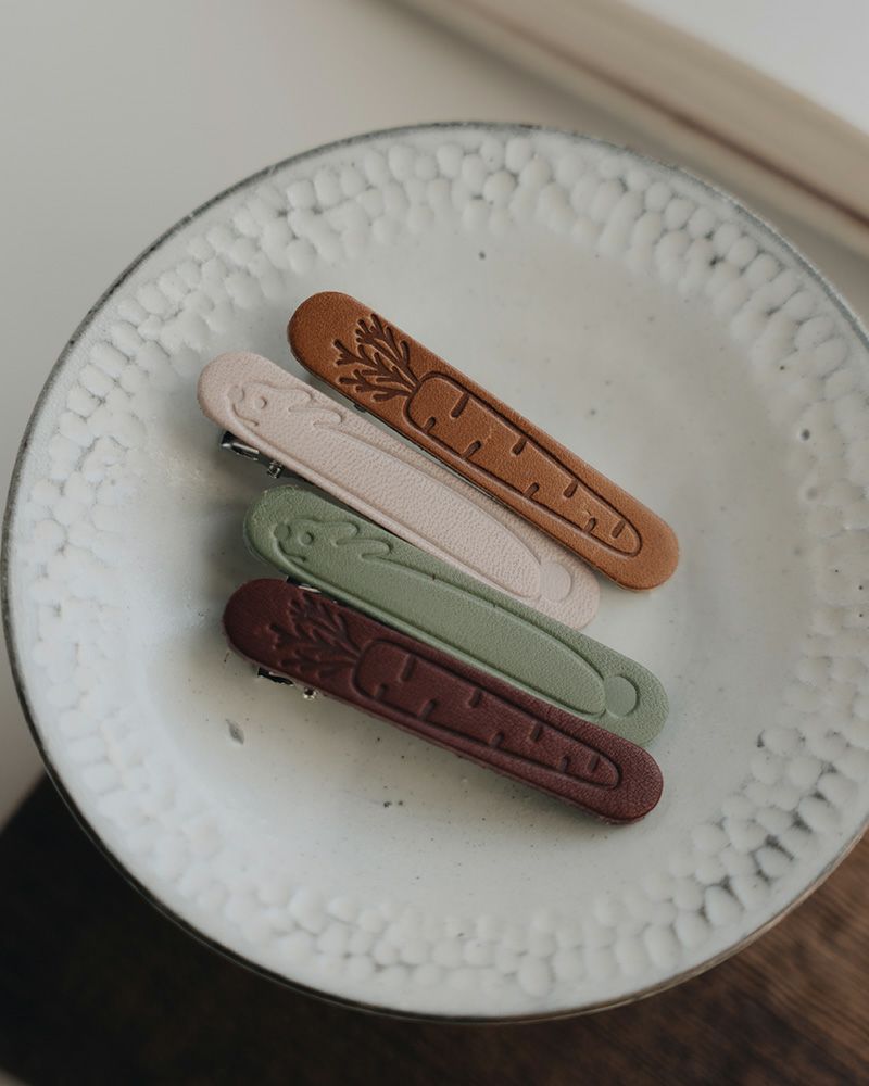 「ながーいねこ」と「ねこじゃらし」が好評のmi chi bataシリーズに「ながーいうさぎ」と「にんじん」のヘアクリップができました。 イラストを見るとほっこりして、思わす笑みがこぼれます。