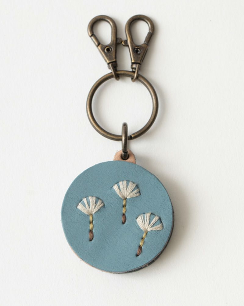 糸と革色の組み合わせが目を引く、8種類の刺繍シリーズ「sa i te キーリング」