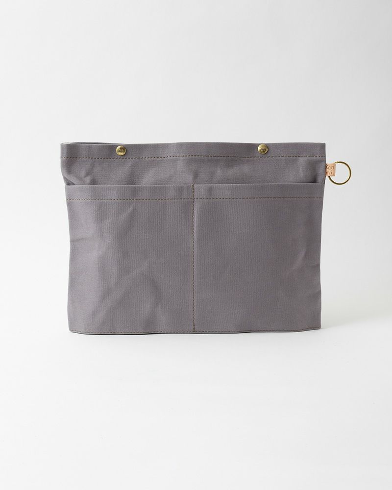 仕切りにもなる「帆布ポケットポーチ」ができました。数種類のバッグを順番に使っている方は、ポケットポーチごと別のカバンにお引越しできる便利アイテムです。毎日持ち歩くこまごましたものをひとまとめにして、ささっと別のバッグに移動しましょう。