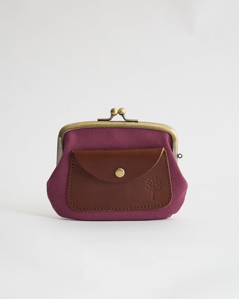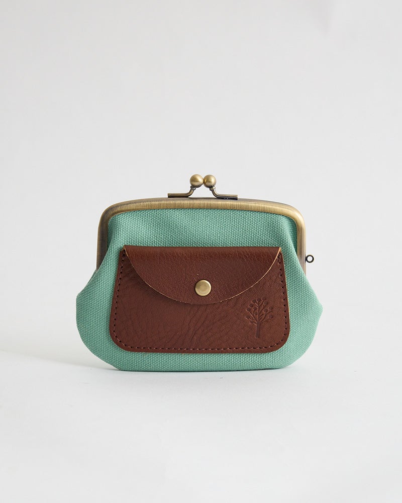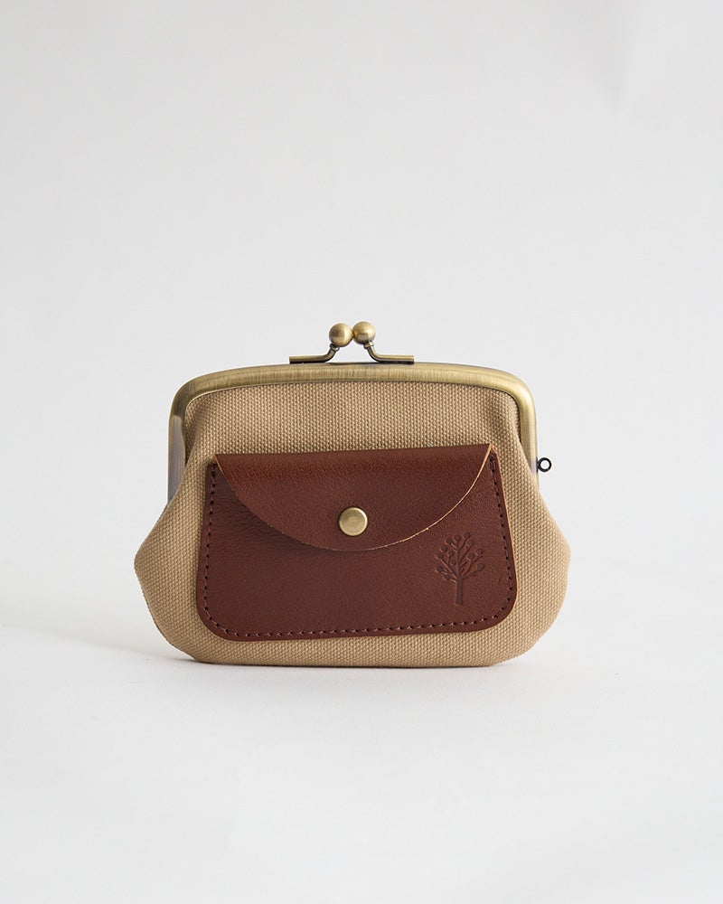 素朴な手触りの帆布が、柔らかく優しい 帆布と革が、素朴かわいい組み合わせ「ドロップツリー ポケット親子がま口」