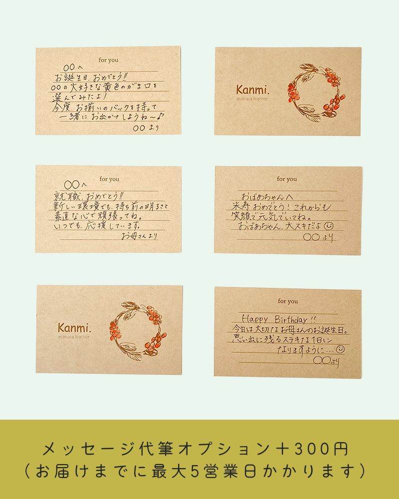 Kanmiスタッフによる代筆が可能です、ご希望の場合はオプションを選択の上、メッセージ内容を通信欄に記載ください。[最大50文字くらいまで]