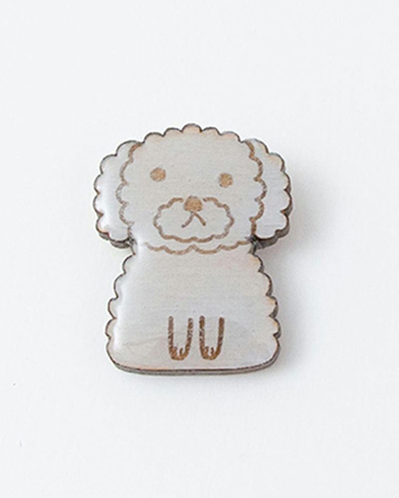 どこにつけよう?まちがいなく可愛いワンちゃんたちが新登場 毛色は犬それぞれ「クリアウッド いぬno ブローチ」
