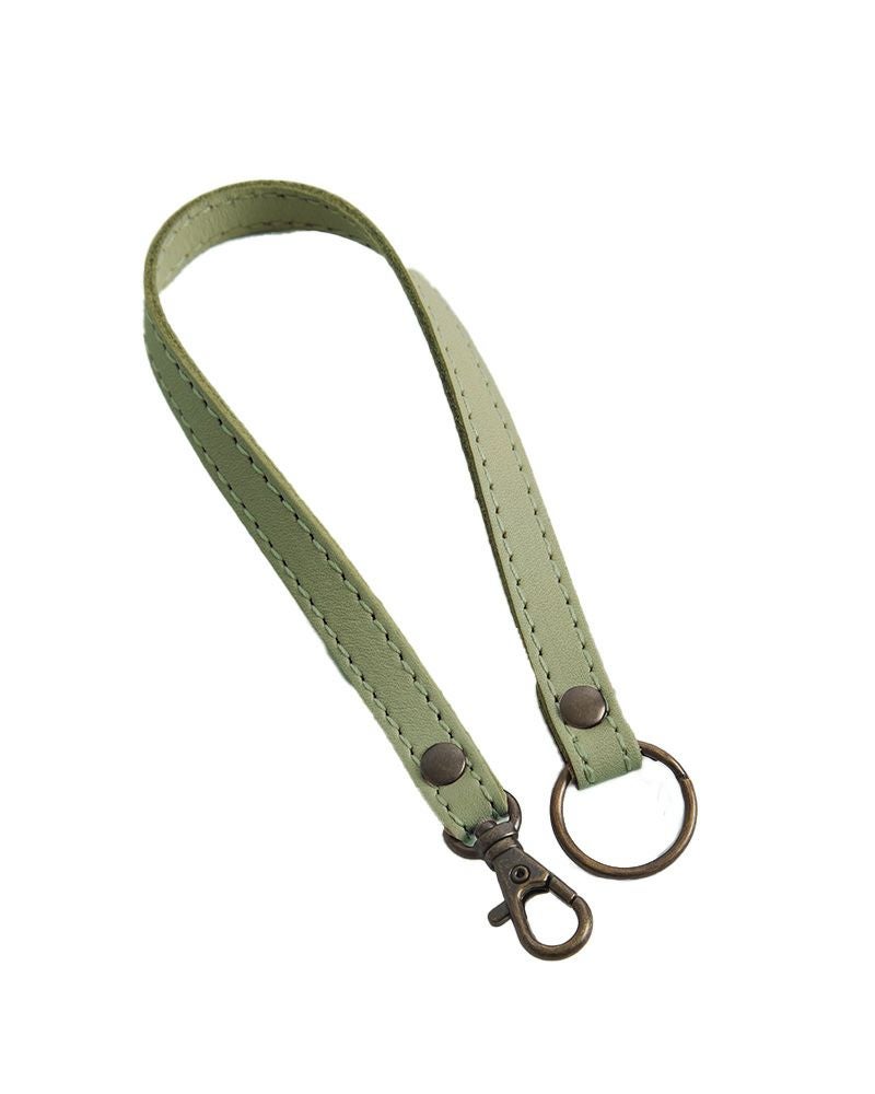 カバンのストラップと同じ二枚重ねレザーは、耐久性もばっちり。使っていくうちに手になじんでいきます。