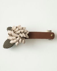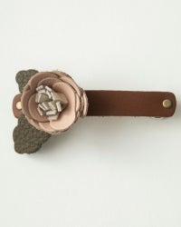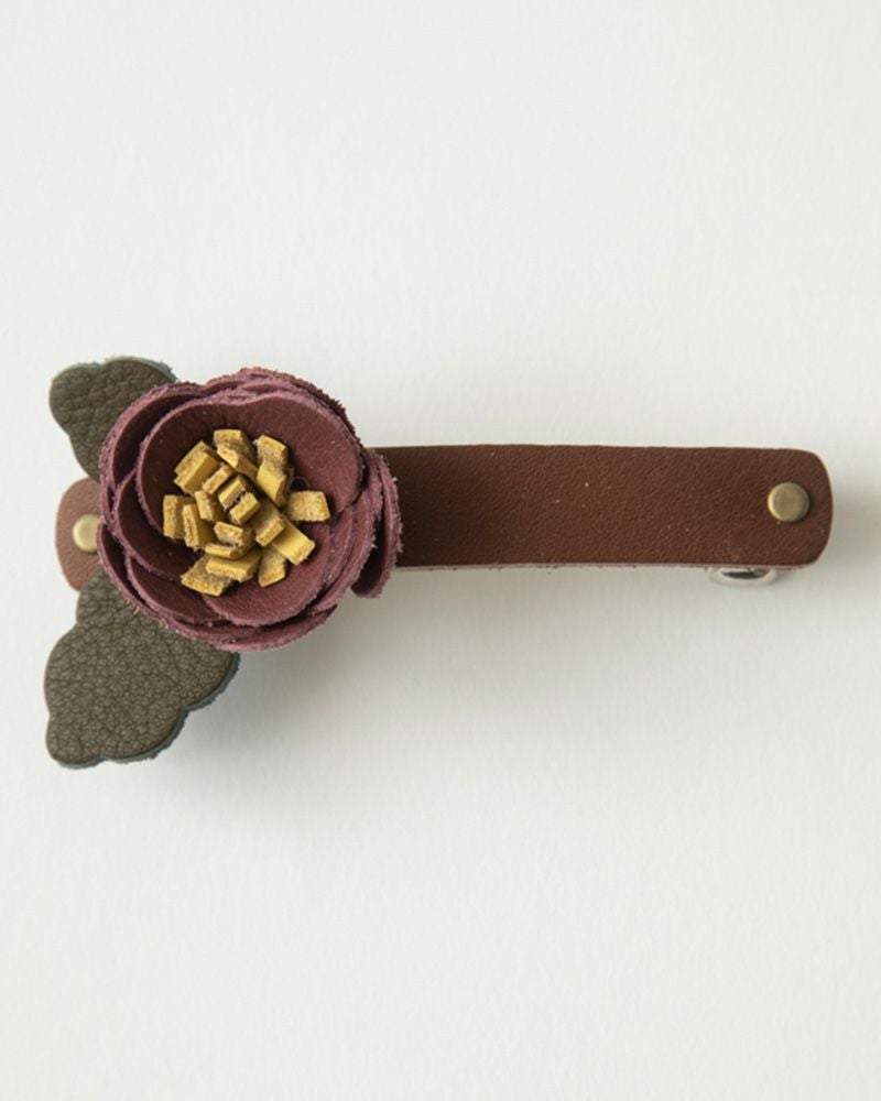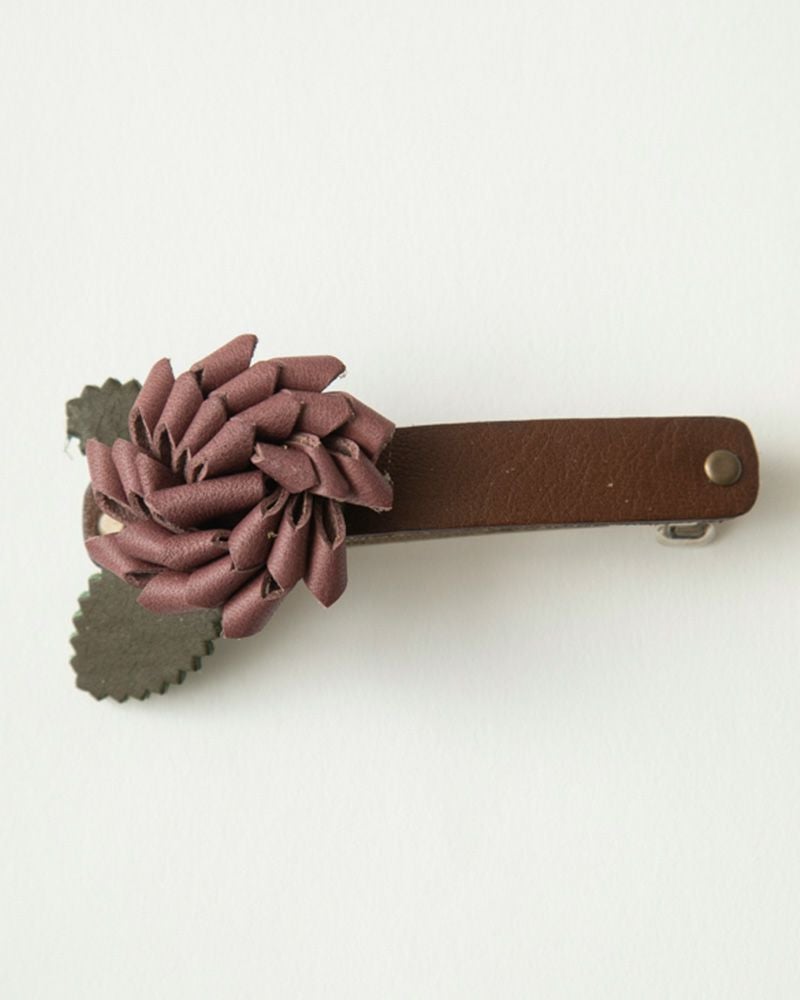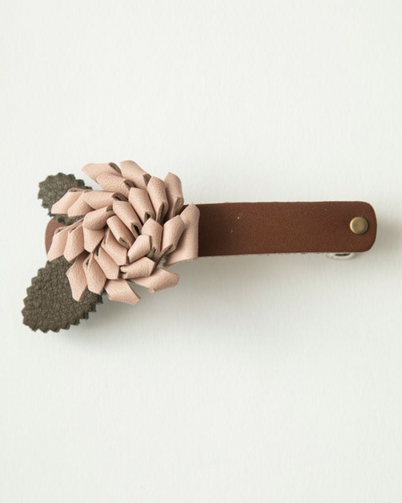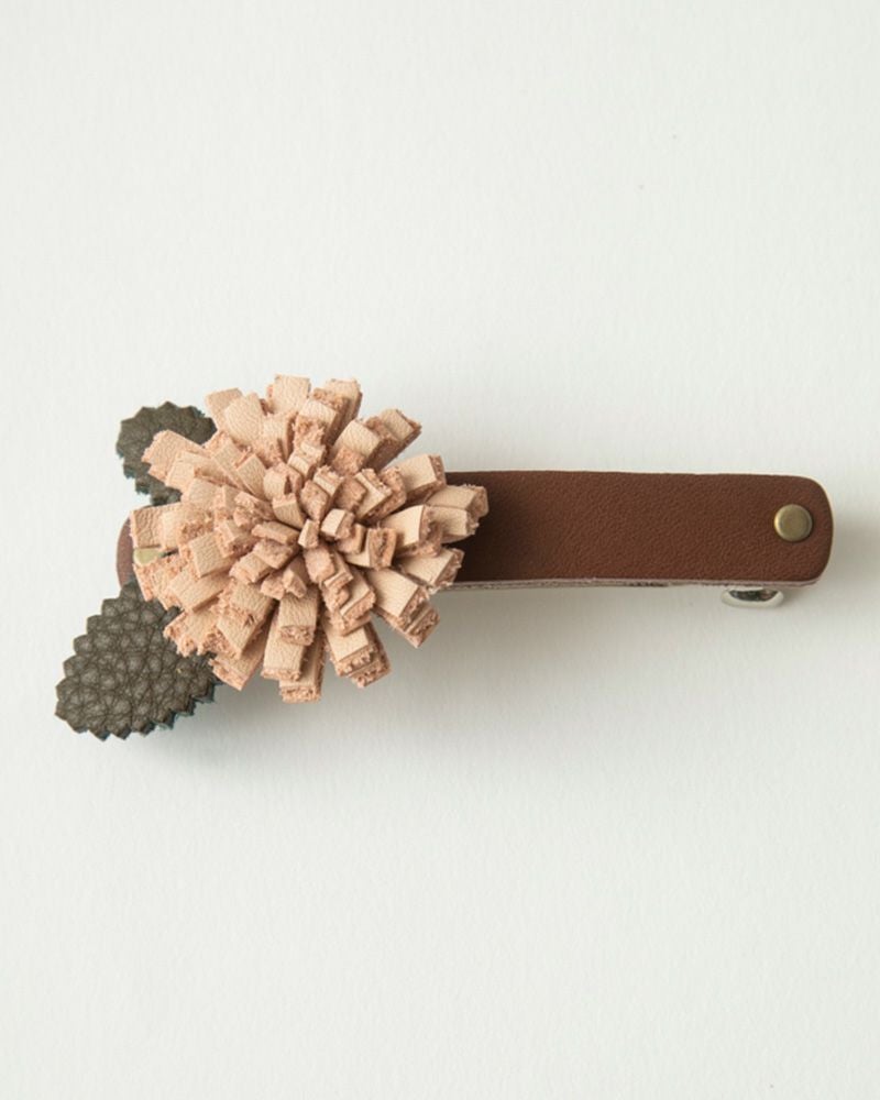 パチンととめるだけで上品な装いに。レザーフラワーバレッタ 簡単にヘアアレンジ「レザーフラワー バレッタ」