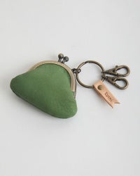 ナスカンが2つ付いているので、鍵をつけたりカバンにつけることもできます。お子さんのバッグにつけて、小さな小さなお財布としても使えそう。おやつ代を入れて自分のがま口からお会計を。柔らかくてフカフカの感触なので、小さい手にもぴったりおさまります。
