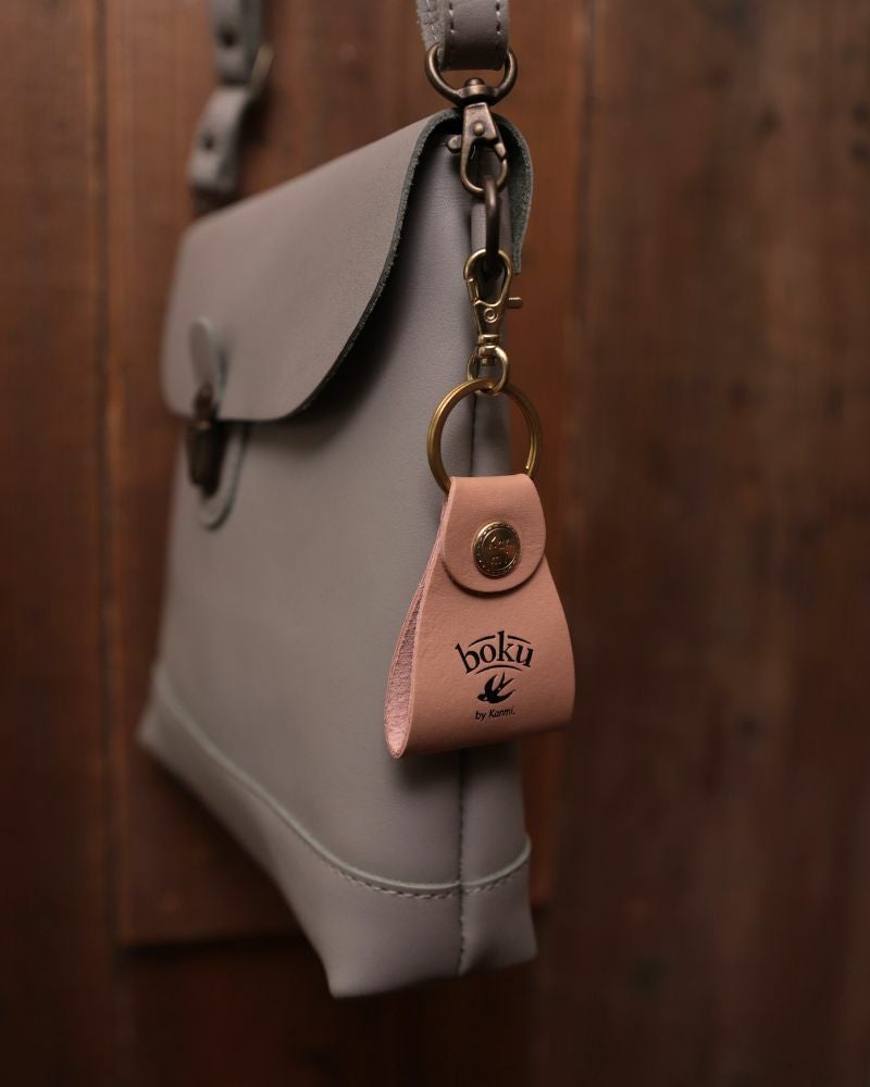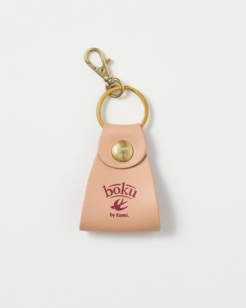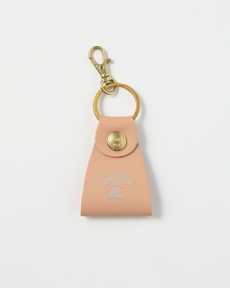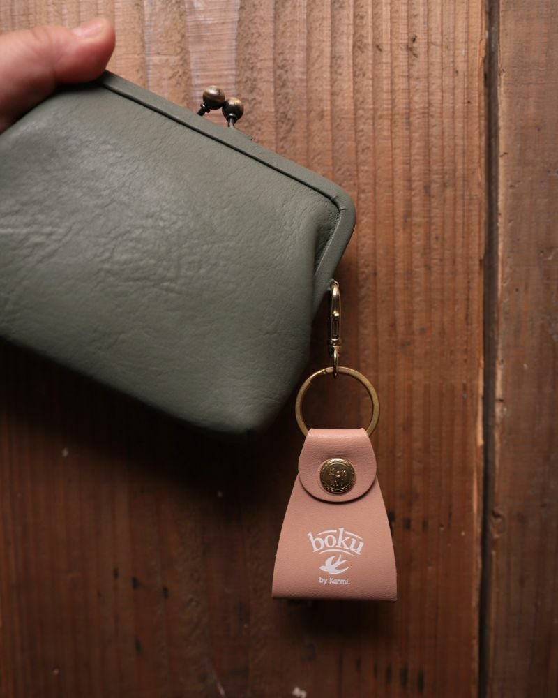 アクセントになっているのは、Kanmi.オリジナルの真鍮カシメ。ちょこんと揺れるタグが鍵の動きに合わせて揺れ、全体にやわらかい遊び心と“らしさ”を添えています。日々のアイテムに、ちょっとだけ気分が上がるような装飾を。