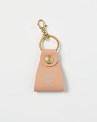 ピンクベージュのしなやかな牛革に、マットな質感のロゴ箔を組み合わせたキーリング。素朴さの中にもしっとりとした奥行きがあり、手に取るたびに革のやわらかさがじんわりと伝わってきます。使い込むほどに味わいが増す、日々のアイテムとして育てる楽しさも魅力のひとつです。