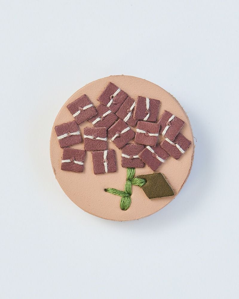 革に一本ずつ糸を通したレトロかわいいブローチ。 ちょっぴりレトロな「sa i te ブローチ」