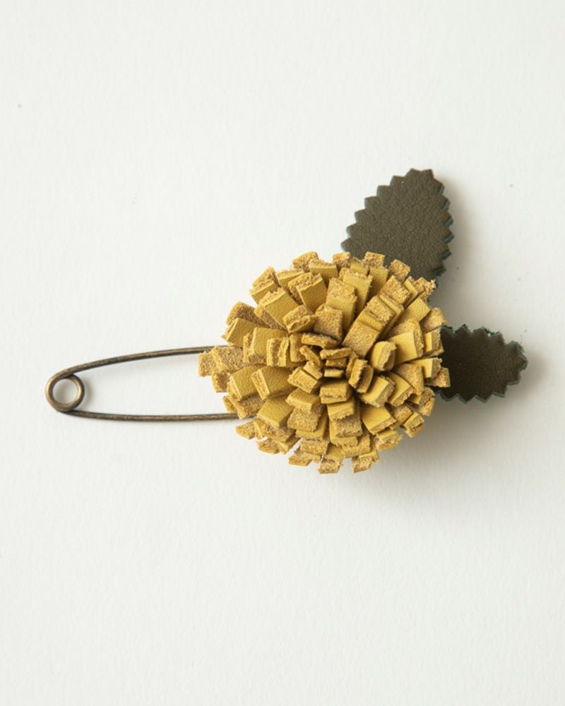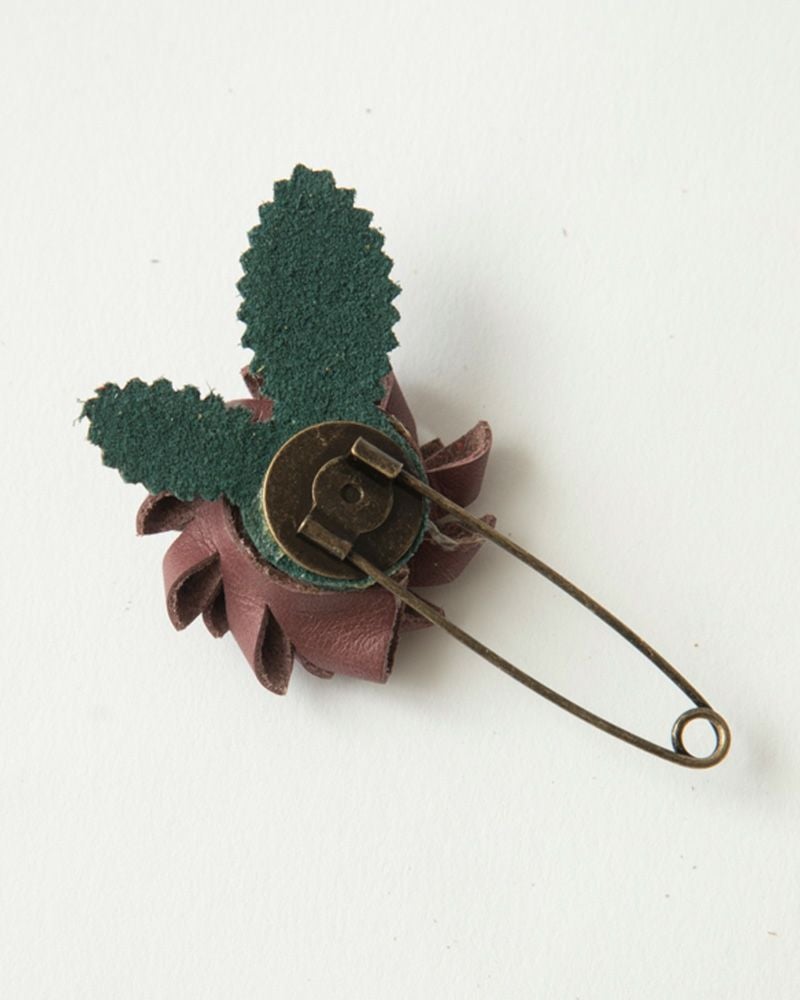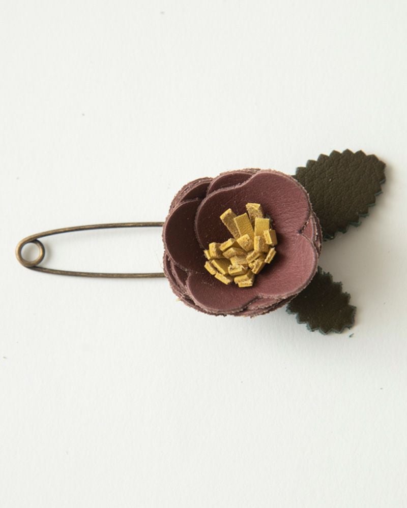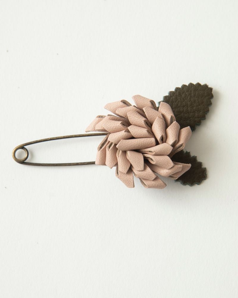 首元や胸元に花を添えてくれる、レザーフラワーショールピン 気分あがるお花モチーフ「レザーフラワー ショールピン」