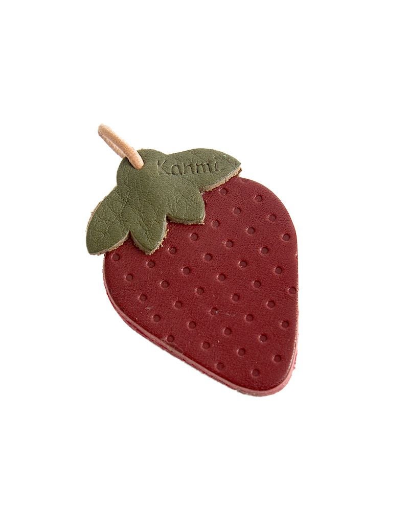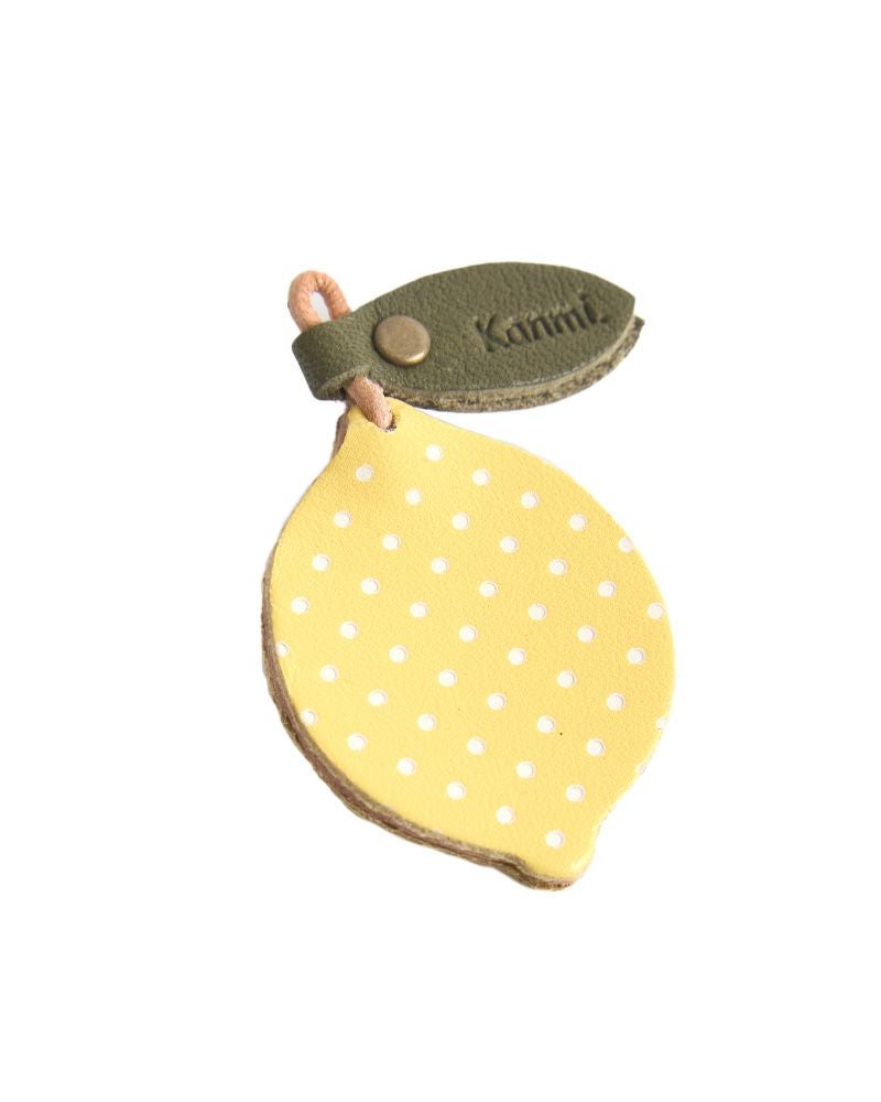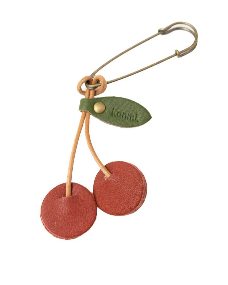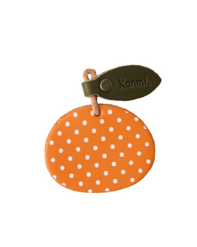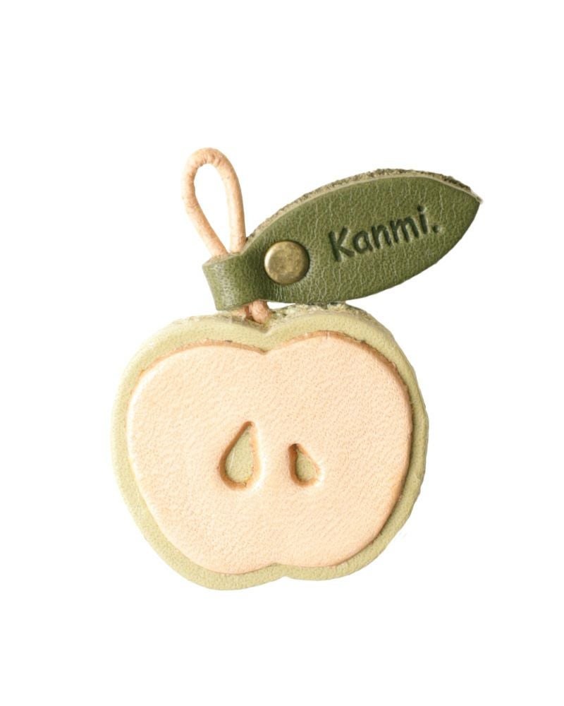 白い水玉がフレッシュさを感じさせてくれるレモンは、葉っぱに押されたKanmi.のロゴがワンポイント。横から見ると黄色とベージュのしましまになっていて、この色合いと厚みが一層かわいさを増してくれています。 落ち着いた赤色のイチゴは大人かわいいシックな雰囲気。イチゴを包んでいるヘタがぷっくりとしていて、果実の豊かさを感じさせてくれます。