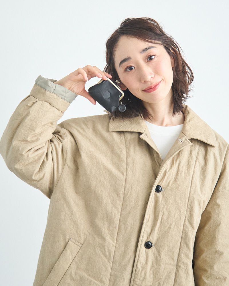 内側に綿麻の布、真ん中には仕切りがついて使いやすくリニューアル。以前よりもがま口のカタチが四角くなったので、少ししゅっとした印象に。
