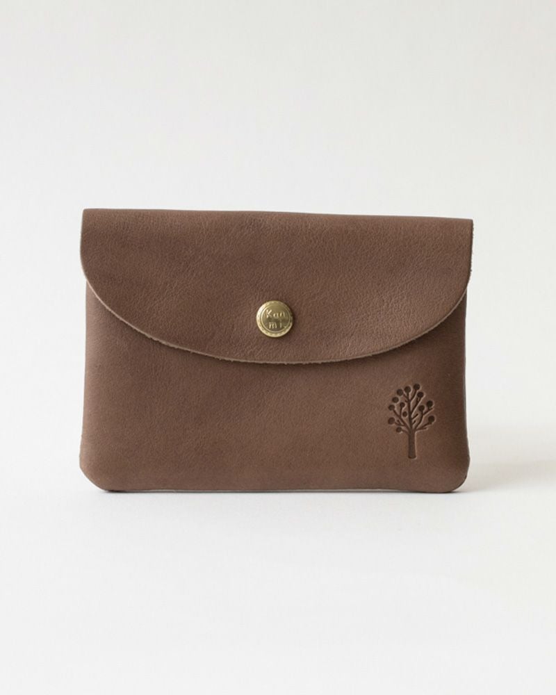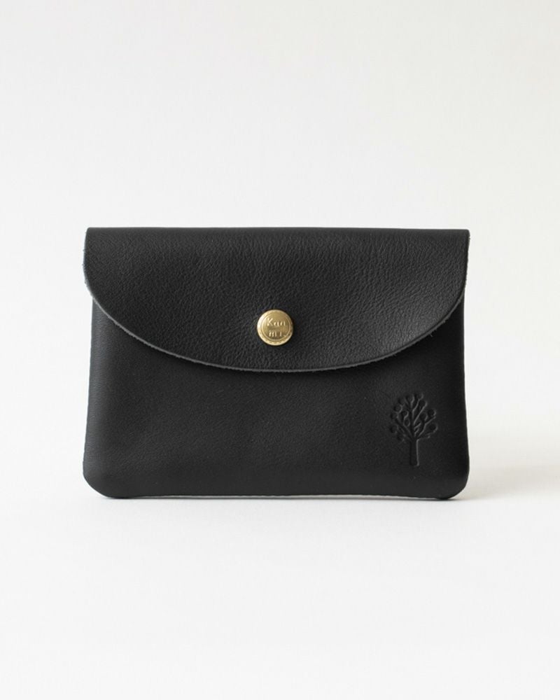 ポケットに入れられるコンパクトで軽いお財布。男性にも使いやすい切りっぱなしの潔さと、角と蓋のラウンドの柔らかい印象が絶妙なバランス。革の裏面の厚みを漉いたことで、内側もなめらかな手触りになって、使い込んでも毛羽立ちにくいのも嬉しい。