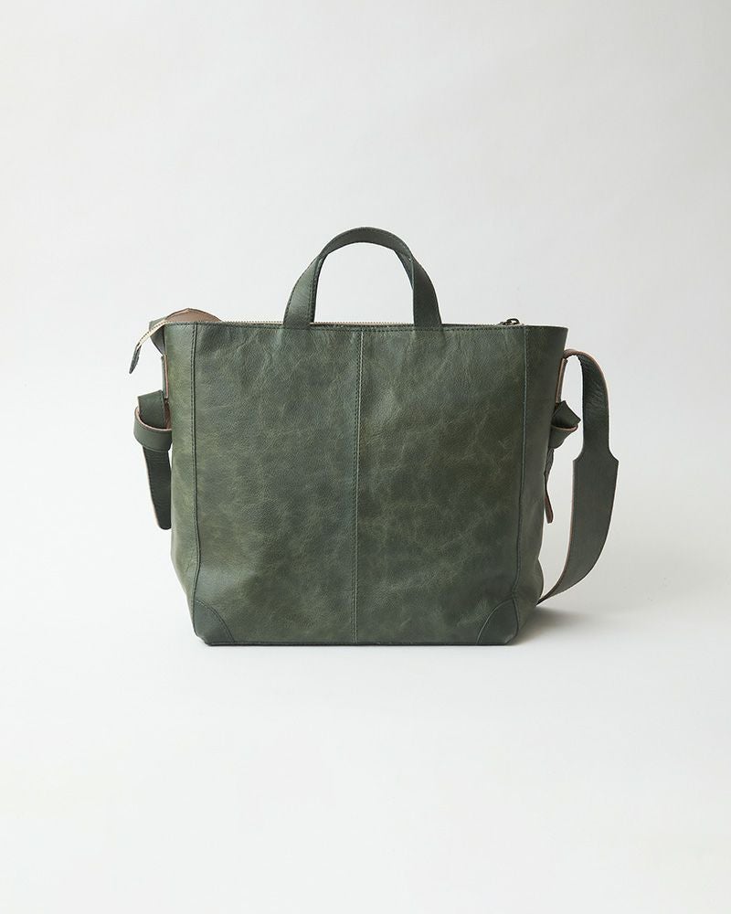オイルとワックスが染み込んでいる、柔らかくて軽い濃淡があるレザー。表情のゆたかさがアンティーク感を出しています。使い込むとツヤが出てくるので、時間が経つと深みのある表情に。見た目よりもかなり軽いので、大きめのバッグでも重さが気になりません。