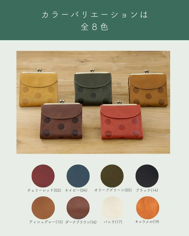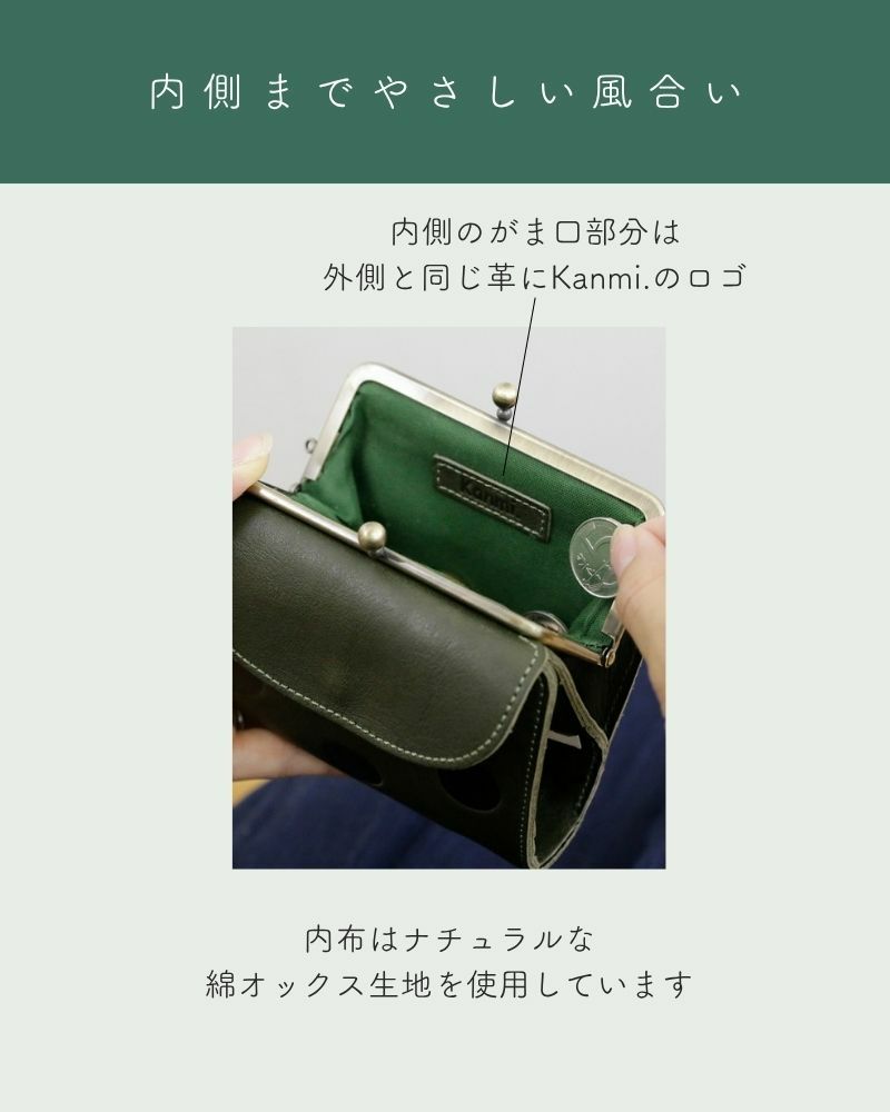 さらりとした肌触りの上質な本革にポコポコと押されたドット柄は、丸の大きさ、間隔、配置までこだわったKanmi.のオリジナル。ついつい撫でていたくなるほっこり感で、手にする度にうきうきした気持ちにさせてくれます。 お支払いの時はもちろん、持っているだけで可愛いと目を引く褒められ上手ながま口財布。大切な方への贈り物や自分へのご褒美にもおすすめです。
