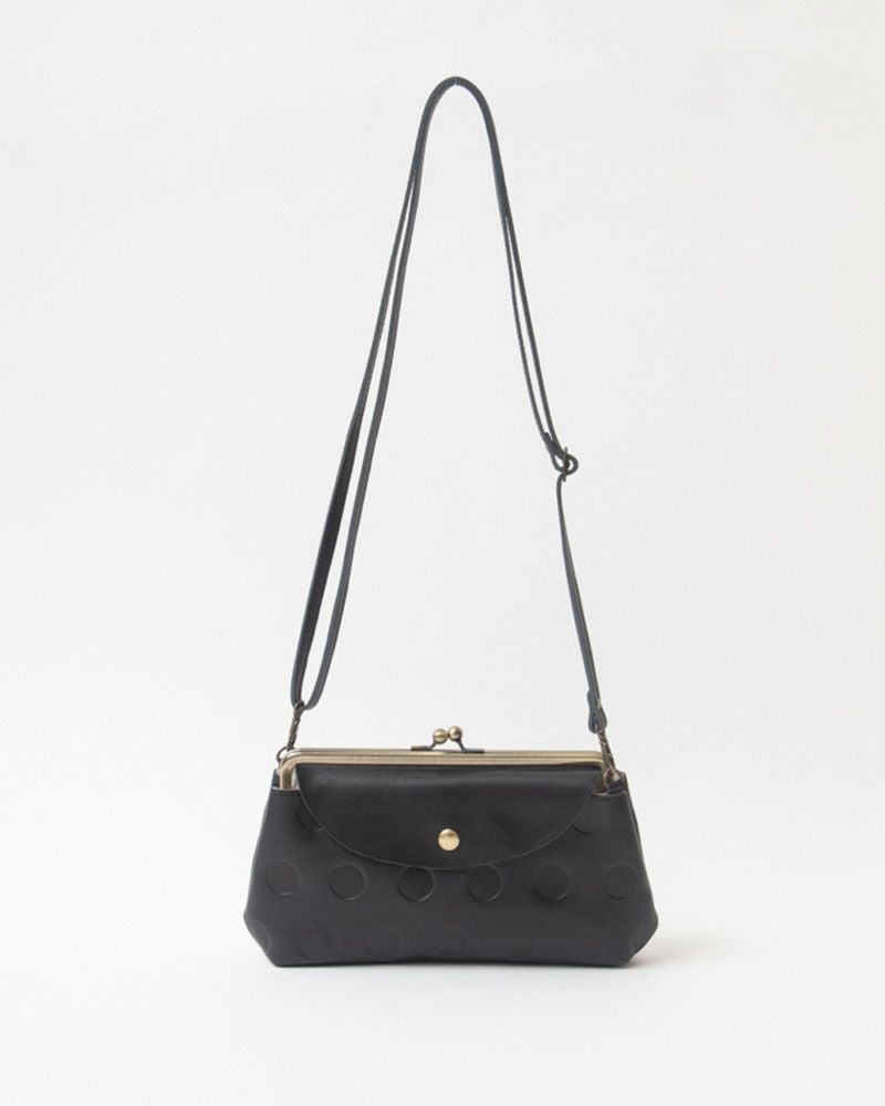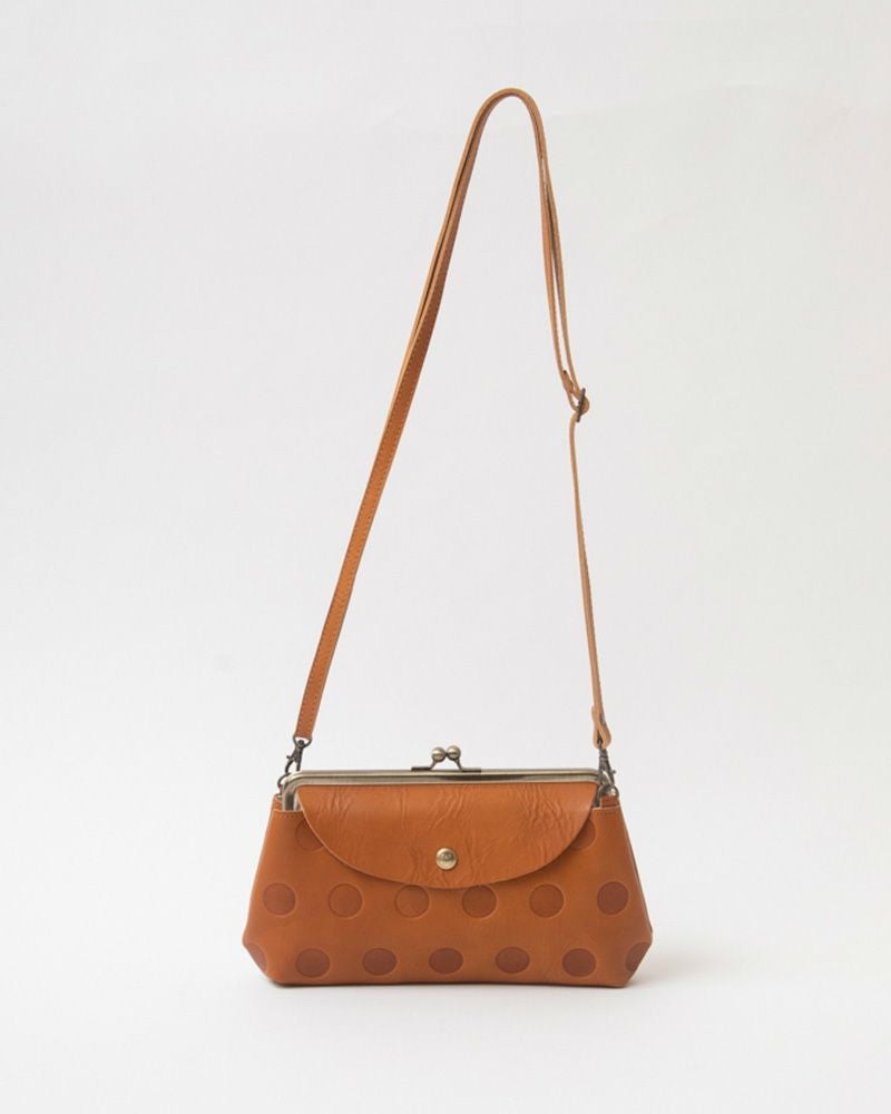 Kanmiオリジナルの水玉「キャンディシリーズ」は丸の大きさや間隔、配置にまでにこだわって作りました。ホックもKanmiオリジナルロゴ入り。 牛革に型押ししていますので、沈み込んだ部分とのコントラストが魅力です。