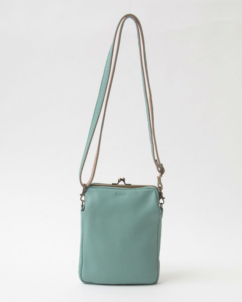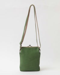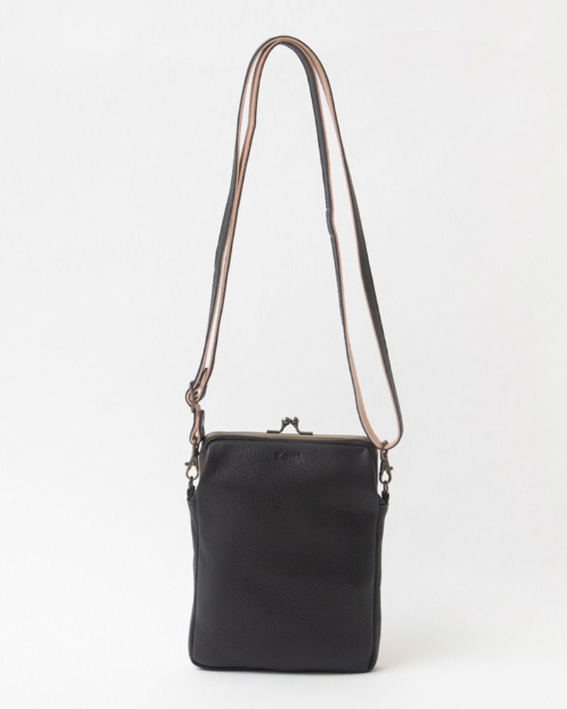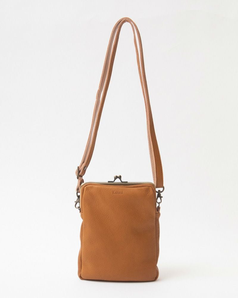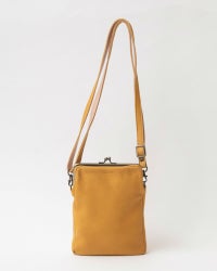 マチは2センチと細めですが革が柔らかく変形してくれるので、多少幅広の物も入れられます。スマホや小さめサイズのお財布、エコバッグを入れてお出かけを。とっても軽くて柔らかいので、つい沢山入れてしまいがちなのですが、膨らみすぎるとがま口が開いてしまう事があるので入れすぎには気を付けて。