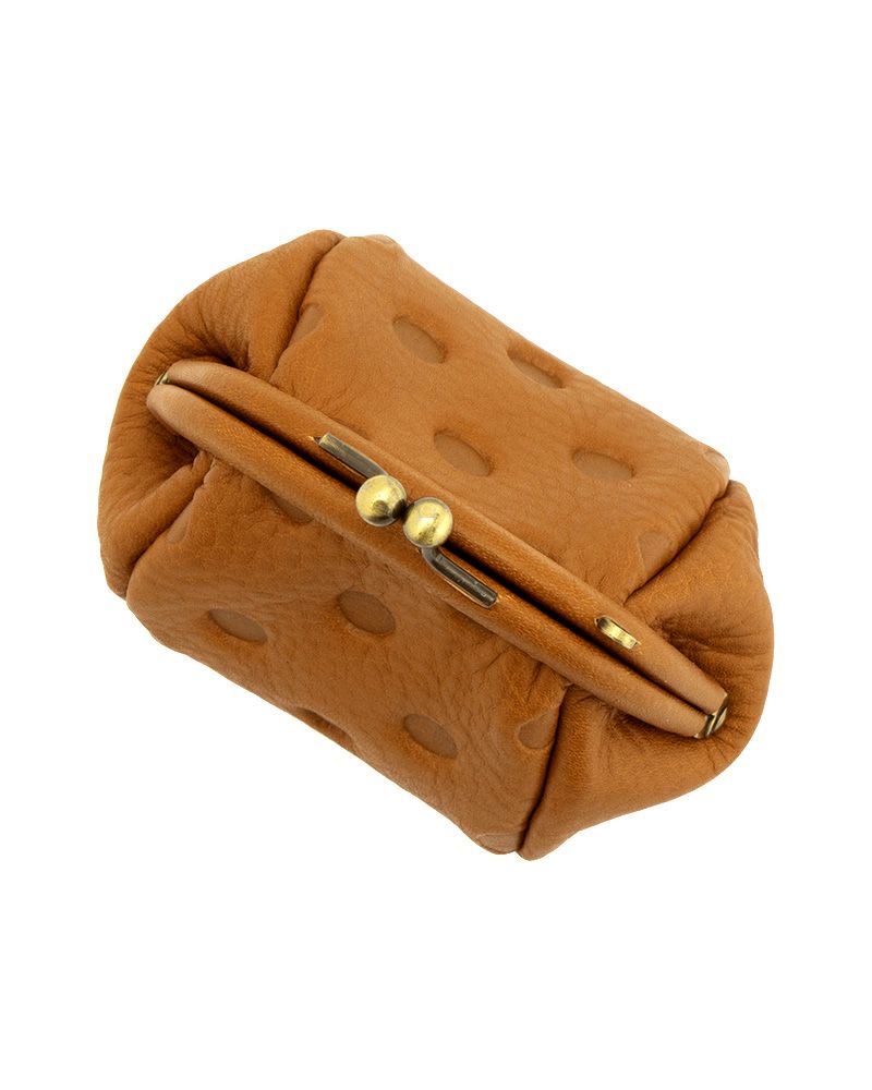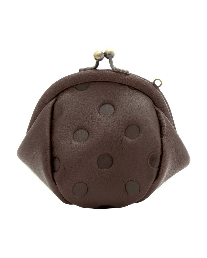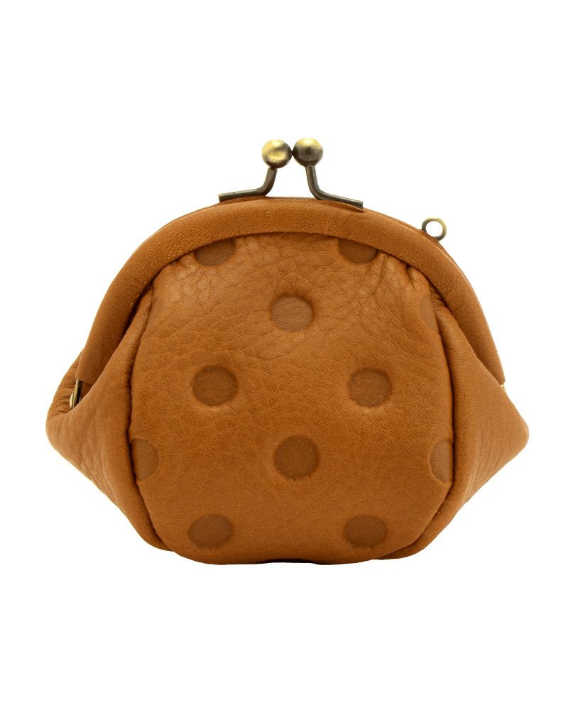 親しみやすいまるまるとしたドットが落ちついた革の革に映えるシリーズ。革巻きで上品な仕上げです。開けると見える生成りのファブリックと相まって、持っているだけでうれしくなるお財布です。
