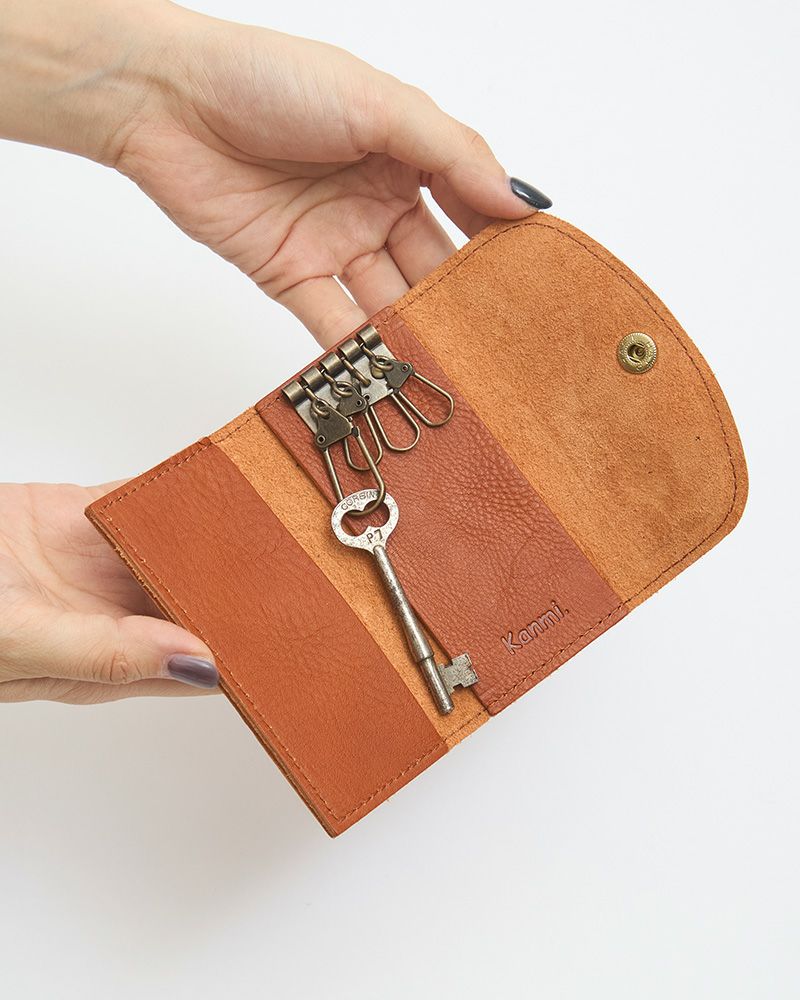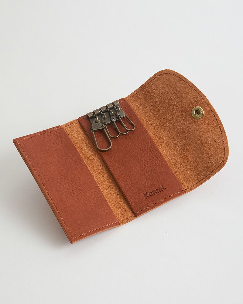 レッド、グリーン、クロ、グレー、ダークブラウン、キャメルの6色。レッドやグリーンも落ち着いた色合いなので、毎日にしっとり馴染んでくれます。そっと暮らしに寄り添ってくれる優しい色たちです。 大きめの鍵もお任せを「ドロップツリー 4連キーケース」