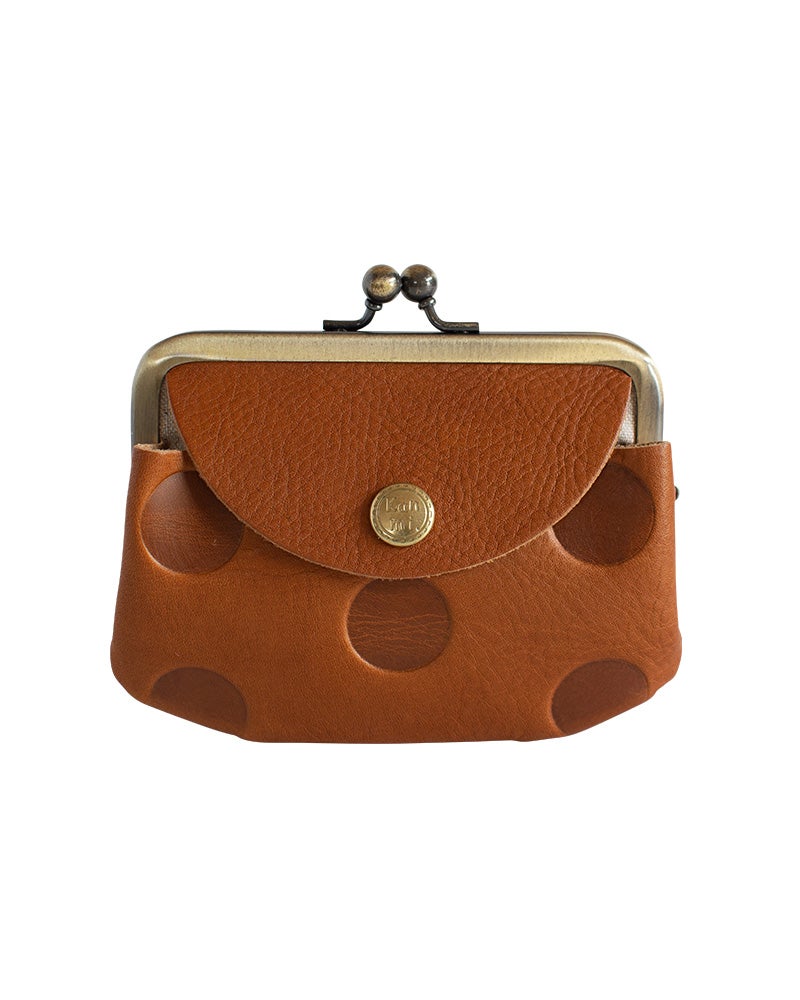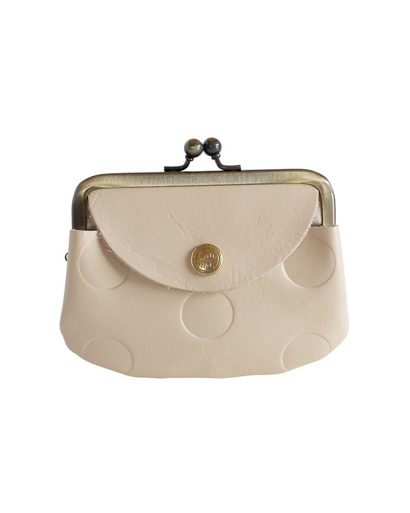 やわらかな本革は、指先にしっとりなじんで、持つだけで自然と気持ちが整う感覚。ドット柄の型押しが、落ち着いた可愛さを添えてくれます。