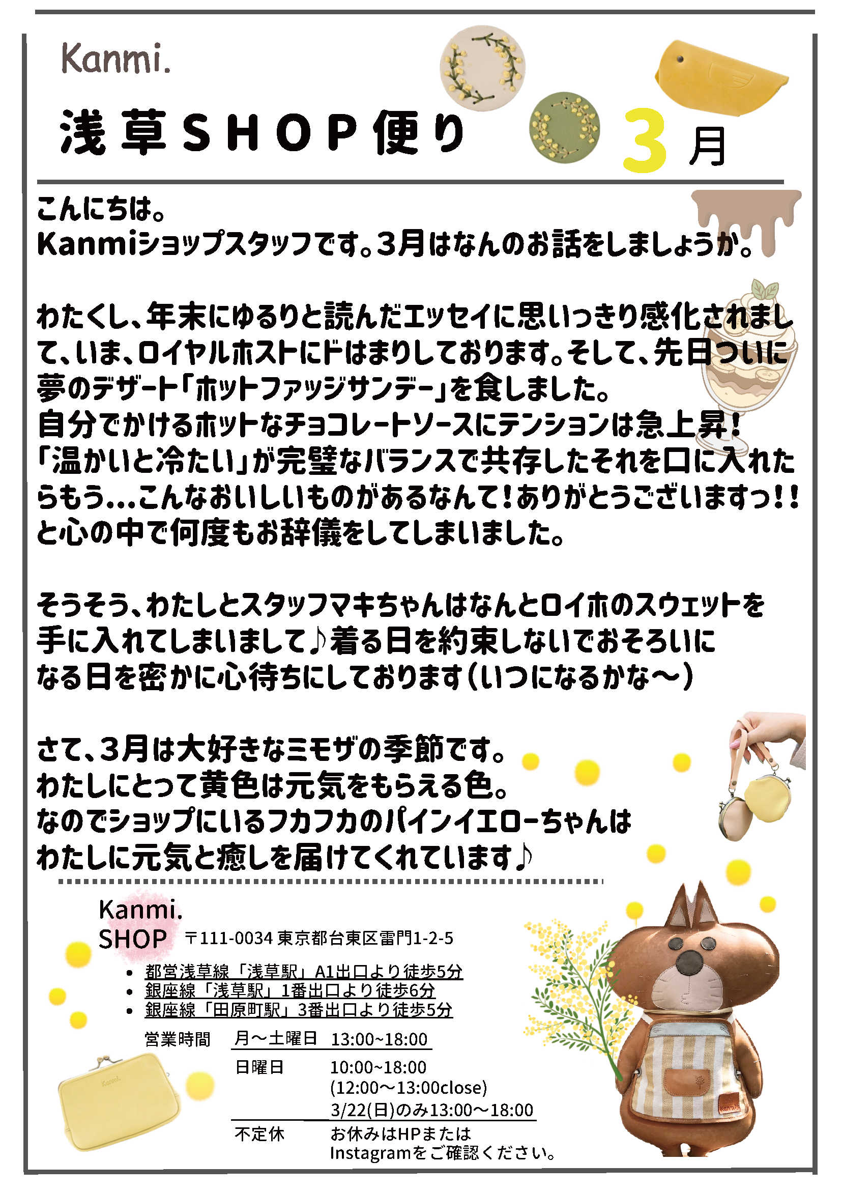 3月のSHOP営業のお知らせ(浅草革小物 Kanmiカンミ)