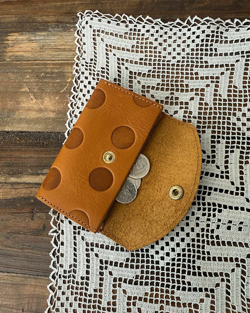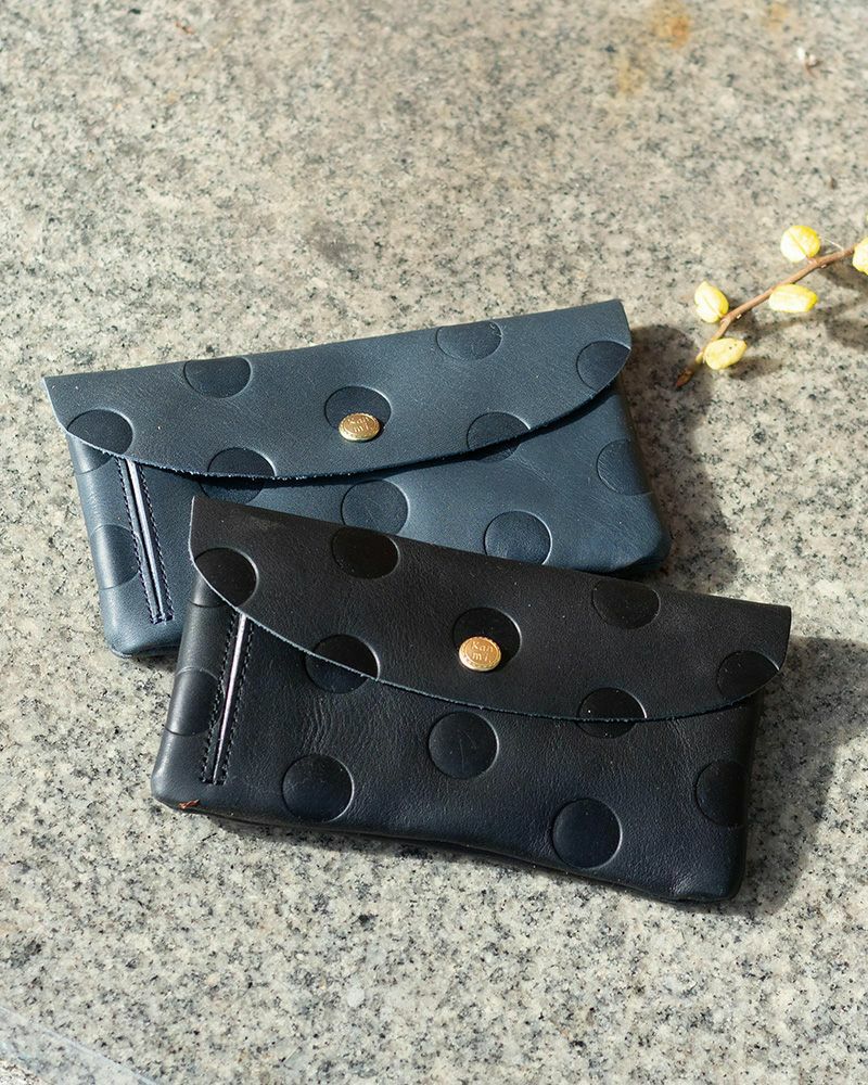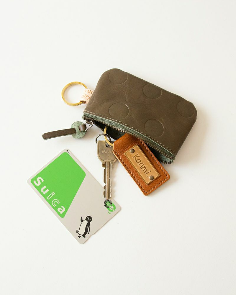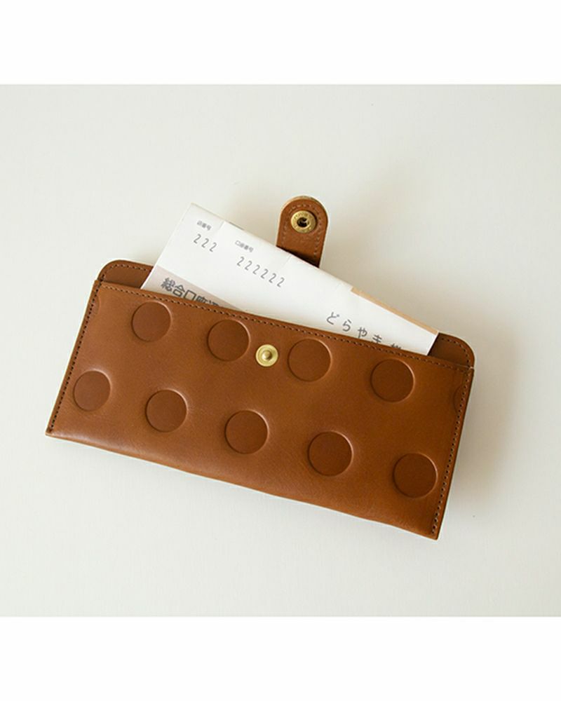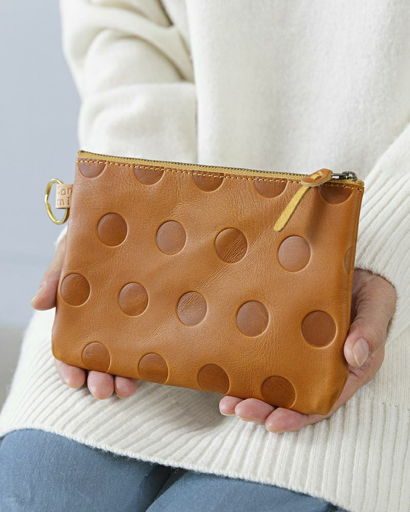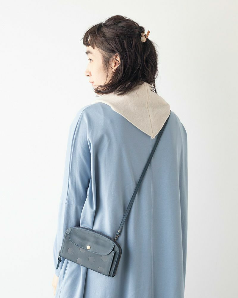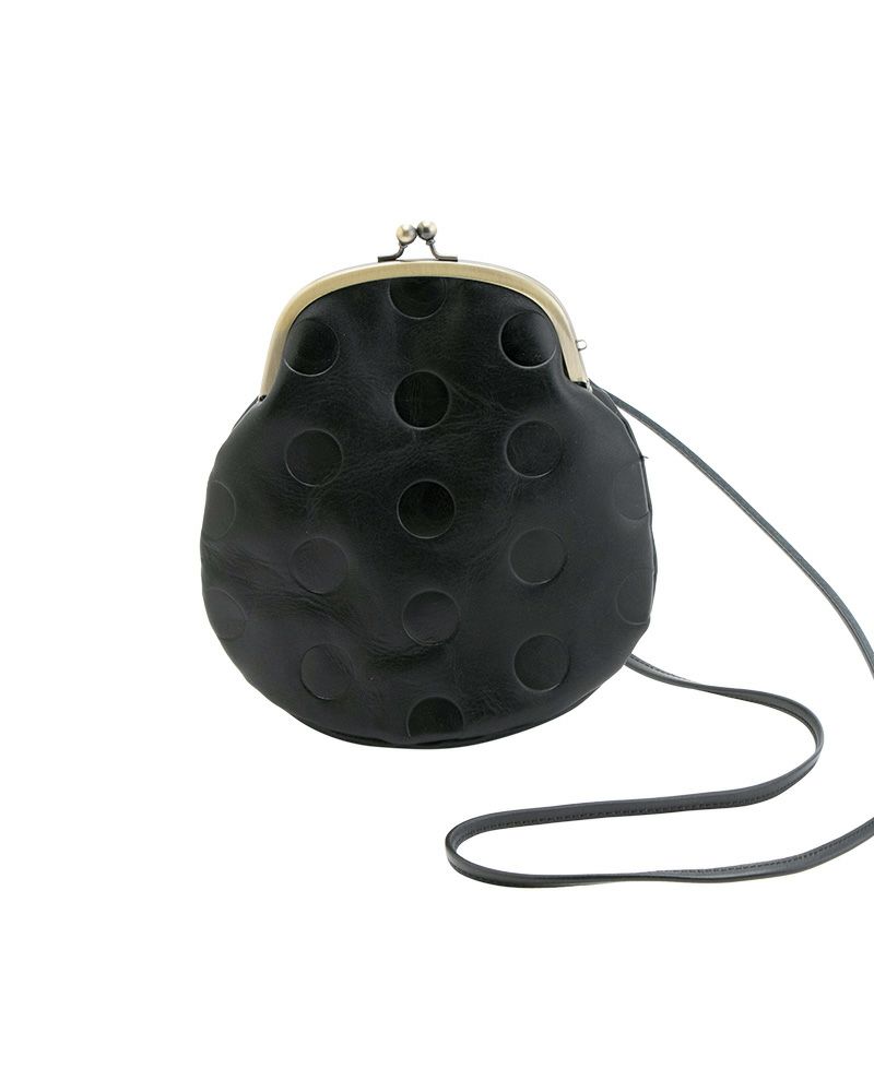 ドットの型押しがポイントのがま口。ふっくら丸みを帯びたフォルムで、どこかレトロな雰囲気が漂います。深さと丸みがあるので、ポーチやアクセサリーケースとして、鞄の中の細々としたものをまとめて収納。お財布としてお使いいただくのにも便利。ポケットに収まるサイズです。