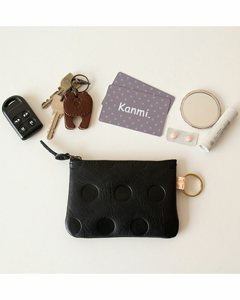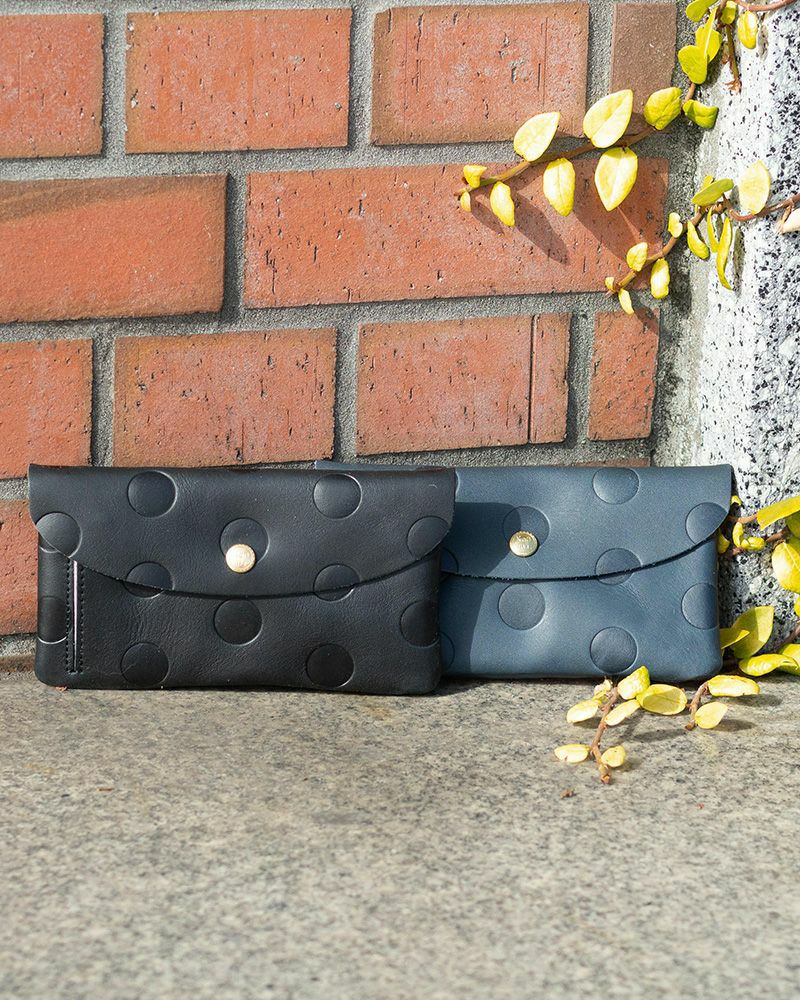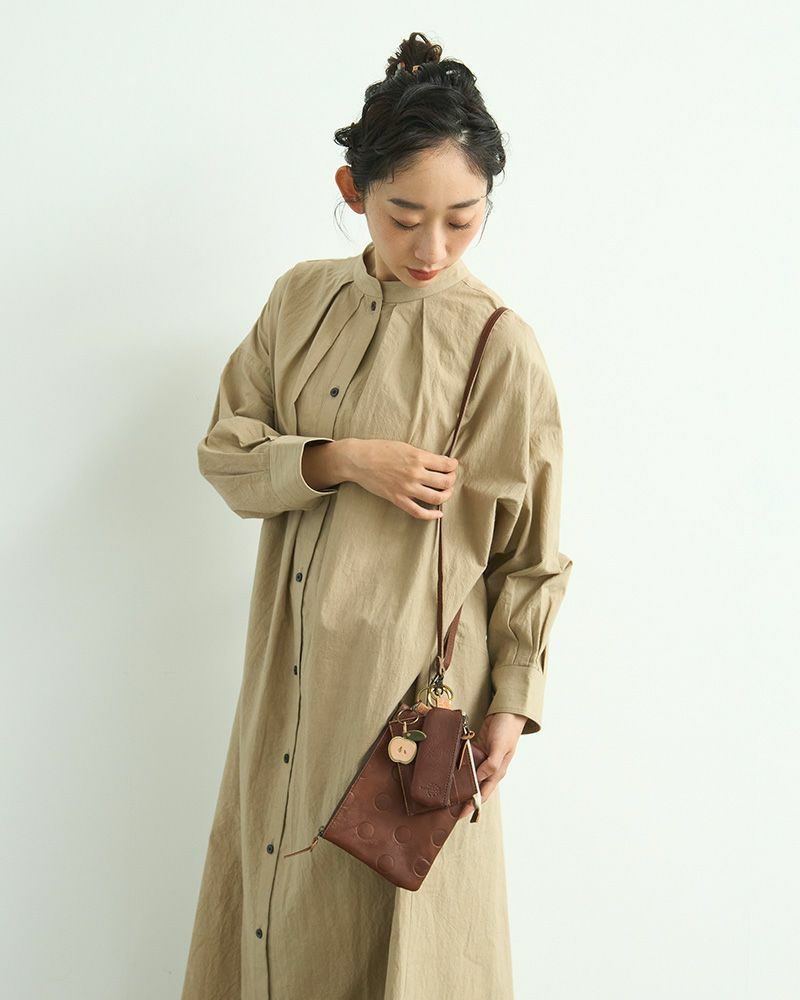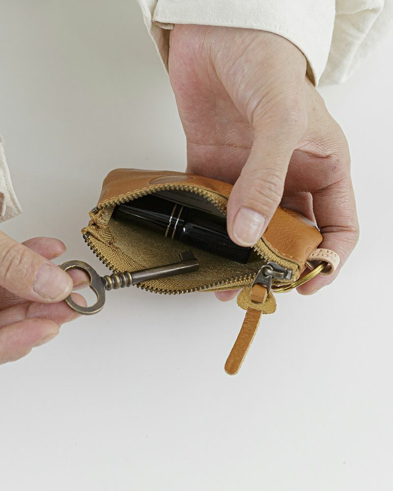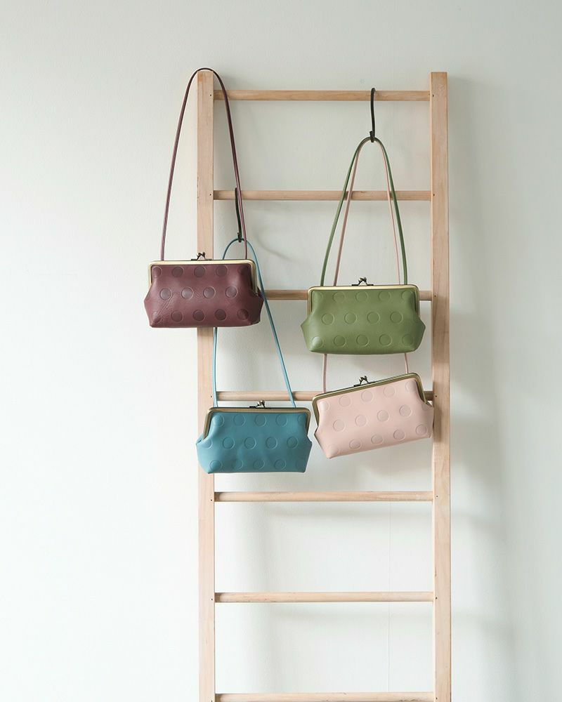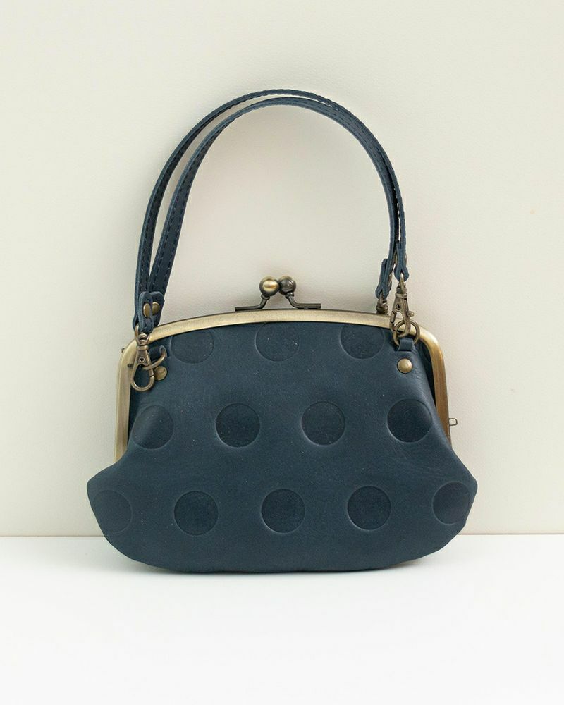 ドットの型押しがポイントのがま口。ふっくら丸みを帯びたフォルムで、どこかレトロな雰囲気が漂います。深さと丸みがあるので、ポーチやアクセサリーケースとして、鞄の中の細々としたものをまとめて収納。お財布としてお使いいただくのにも便利。ポケットに収まるサイズです。