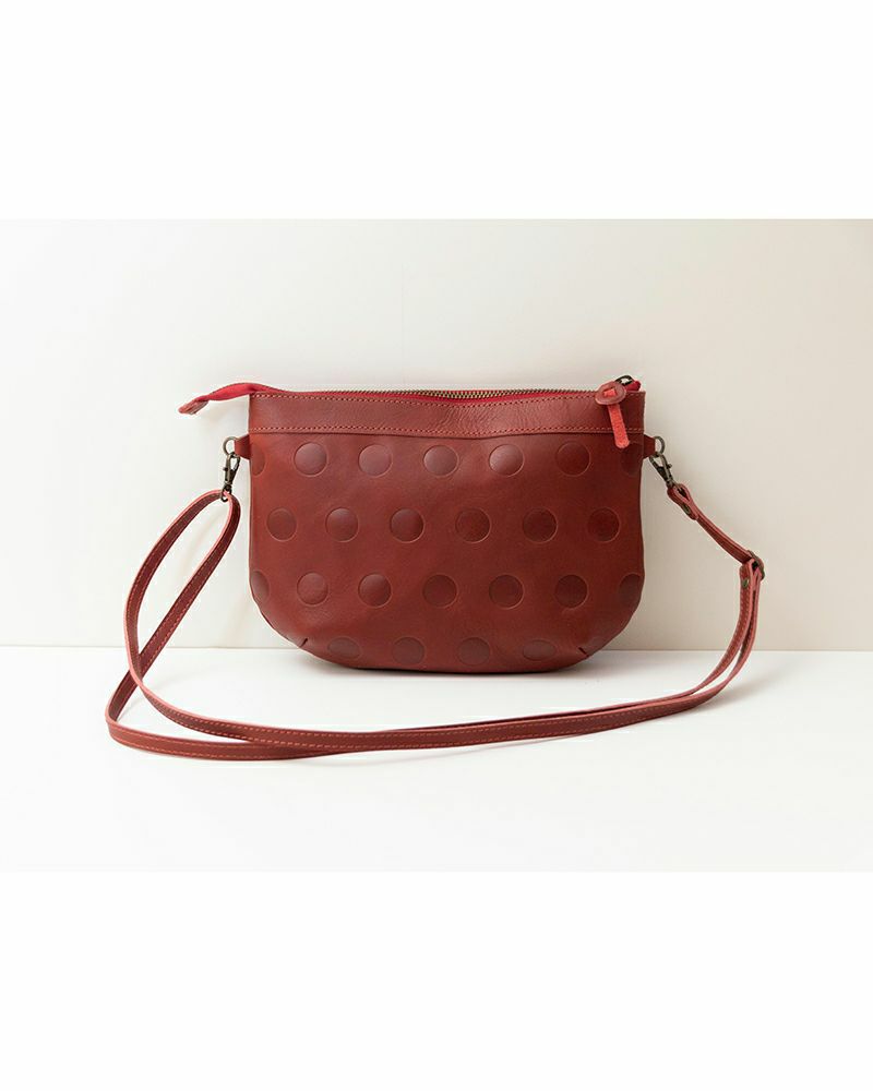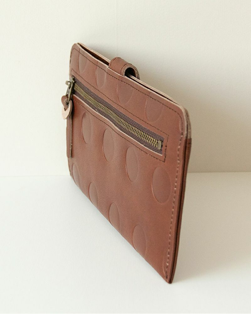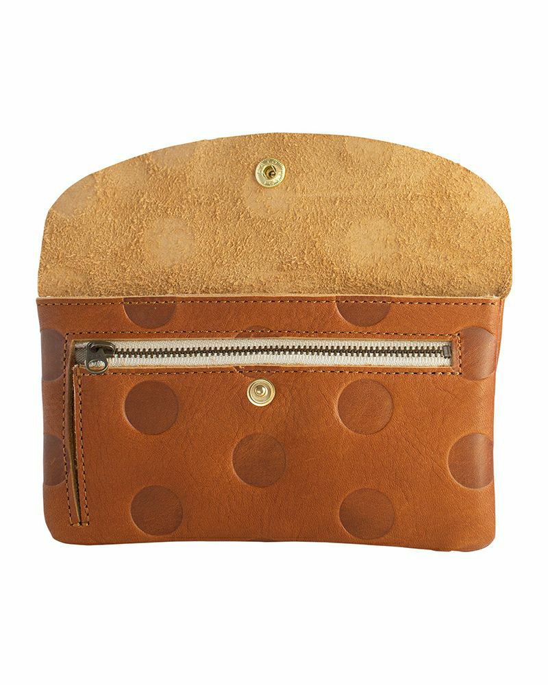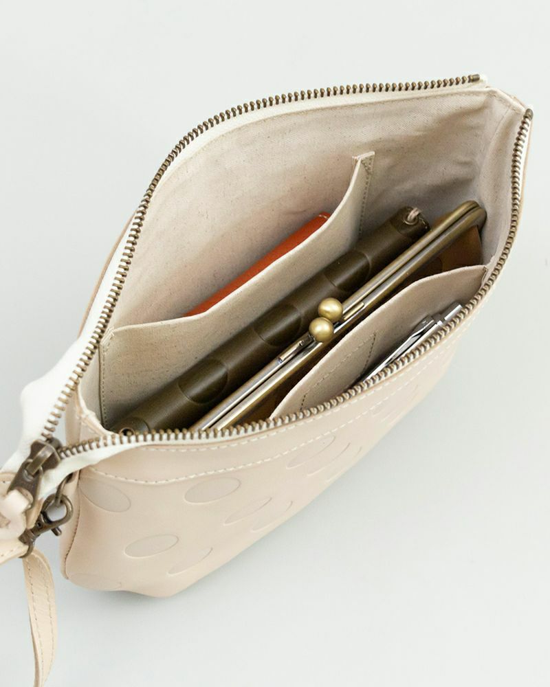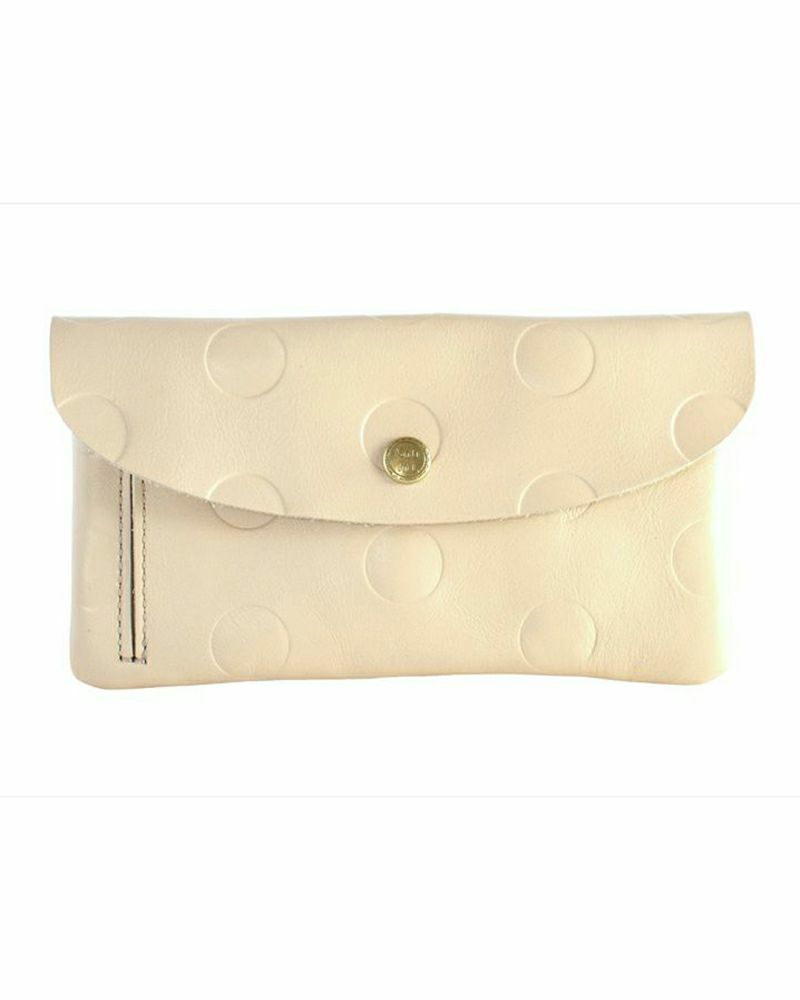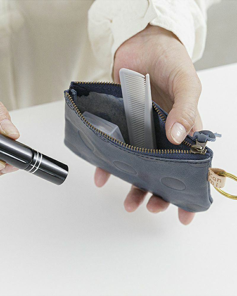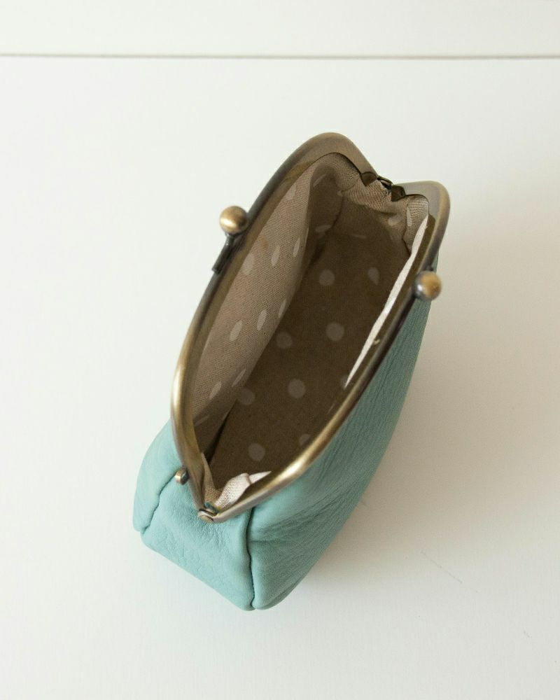 ドットの型押しがポイントのがま口。ふっくら丸みを帯びたフォルムで、どこかレトロな雰囲気が漂います。深さと丸みがあるので、ポーチやアクセサリーケースとして、鞄の中の細々としたものをまとめて収納。お財布としてお使いいただくのにも便利。ポケットに収まるサイズです。