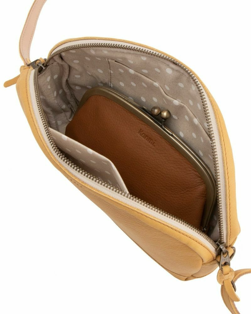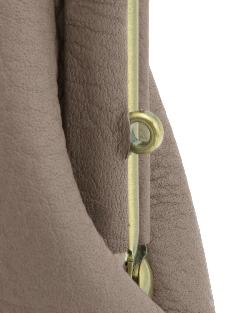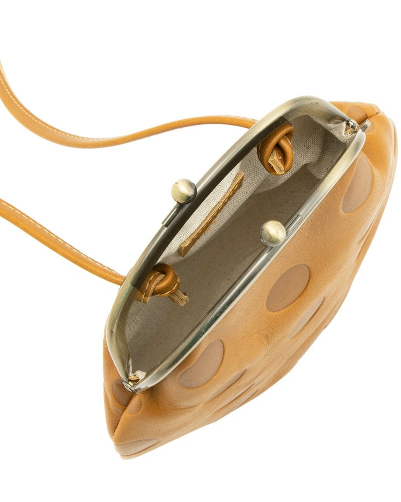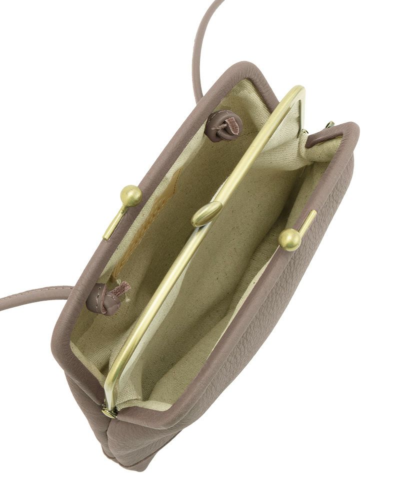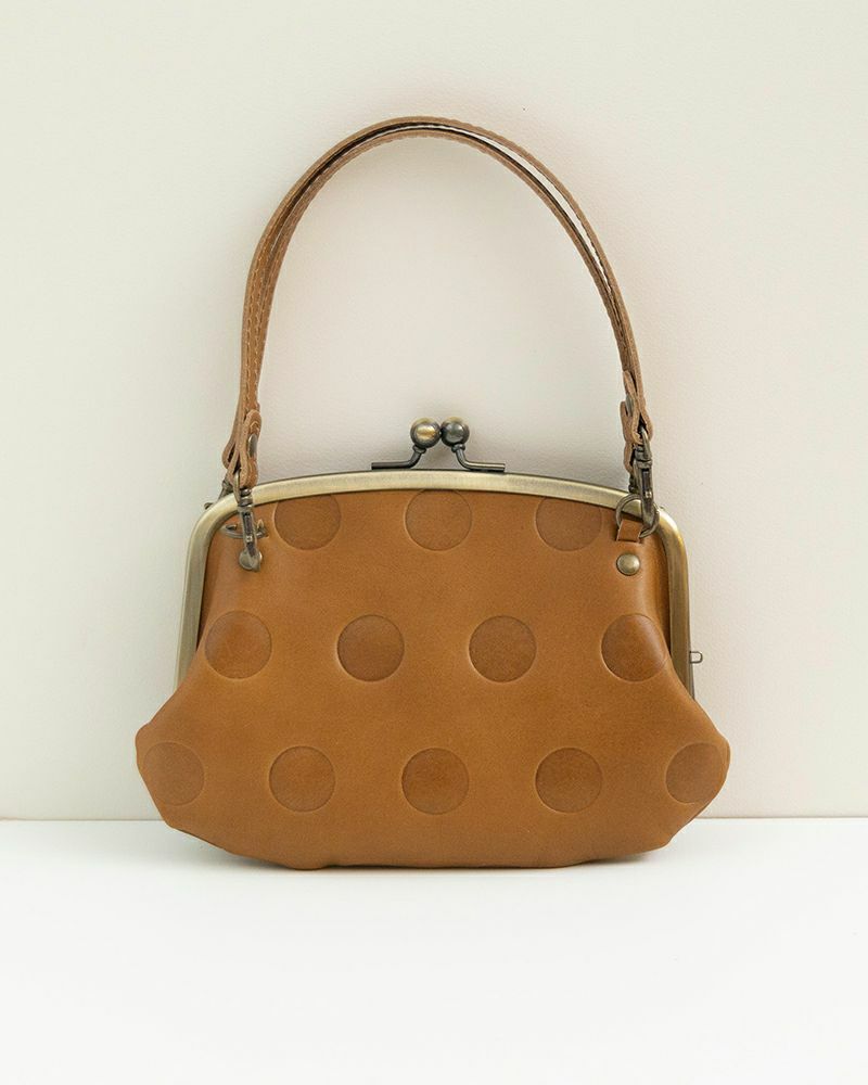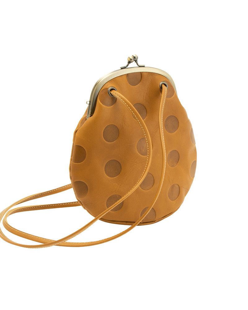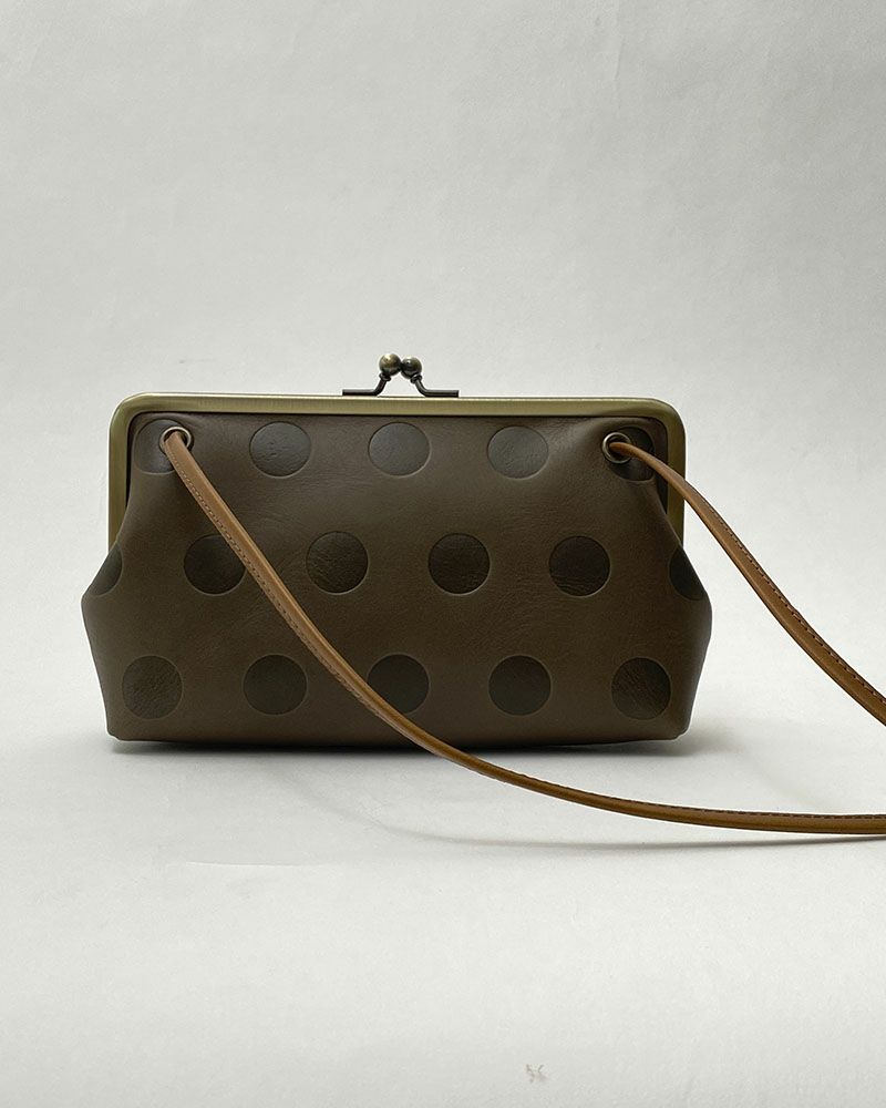 たった150gの軽量がま口ポシェット。ちょっとそこまでの時や荷物を最小限にしたい旅先などにぴったり! ナチュラルな風合いの本革とキャンディのような水玉模様が大人可愛いがま口バッグです。