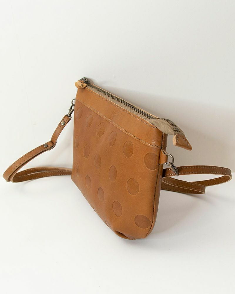 ちょっとそこまでの時や荷物を最小限にしたい旅先などにぴったり! ナチュラルレザーとキャンディのような水玉模様が大人可愛いがま口ポシェットに。 《20%OFF》【撮影サンプル】「キャンディ トラベル がま口ポシェット」