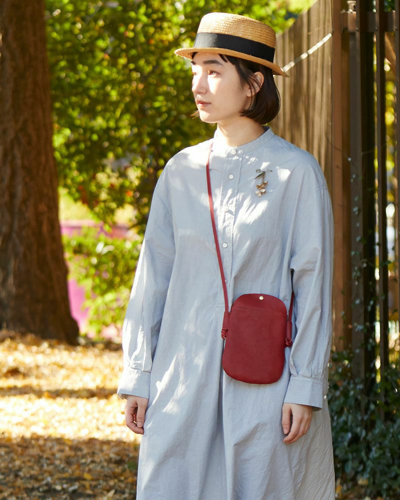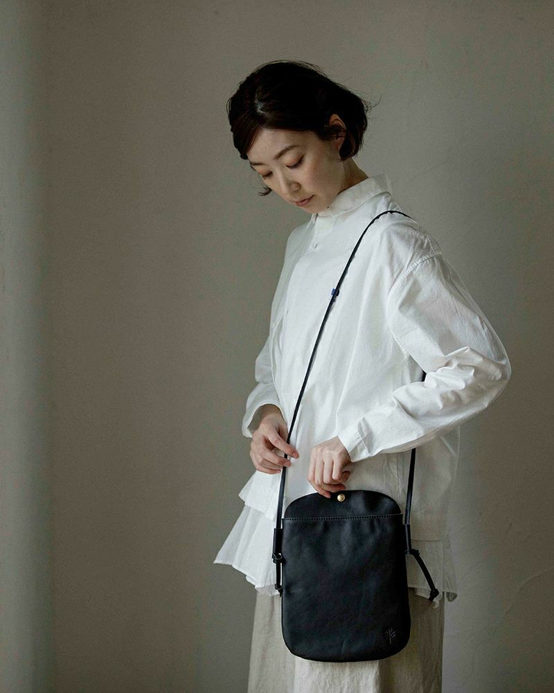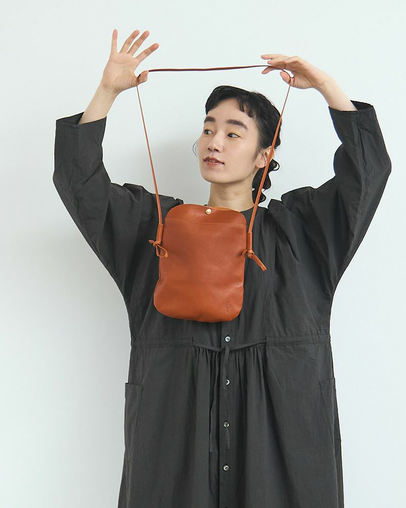 角丸のしかくいカタチが特徴的なポシェット。 シンプルで使いやすいからシーンを選びません。 貴重品を入れてリュックと二個持ちで。エコバッグと一緒に持って毎日のお買い物に。もちろん、少しの外出ならこれひとつでOK。