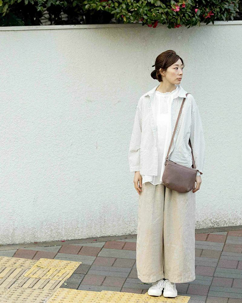 ドラマ「滅相も無い」で登場した人気のがま口ショルダーバッグ。綺麗めなコーディネートにも合わせやすい無駄なくすっきりなデザイン。