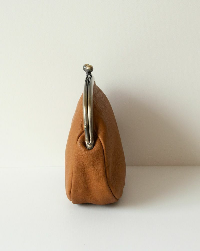 まあるいカタチがなんとも愛らしいがま口ポーチ。 マチが5cmと広くとってあるから、お出かけ用のお化粧ポーチにしたり、リップクリームやハンドクリームなどの持っていたい小物を入れたりと、可愛い姿で万能なポーチです。